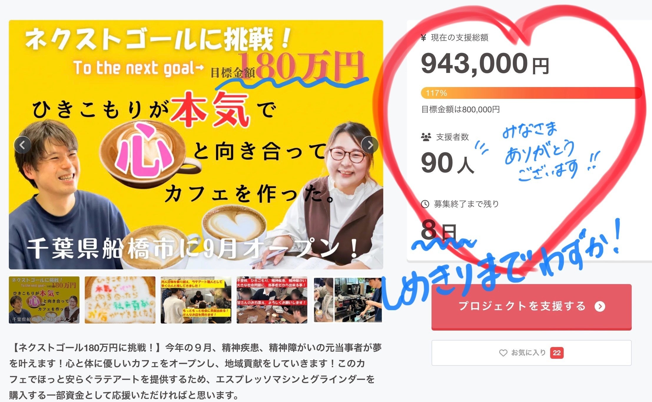 はじめの目標額を達成し、ネクストゴールを新たに設定させていただいてから、あっという間に残すところ1週間となりました。