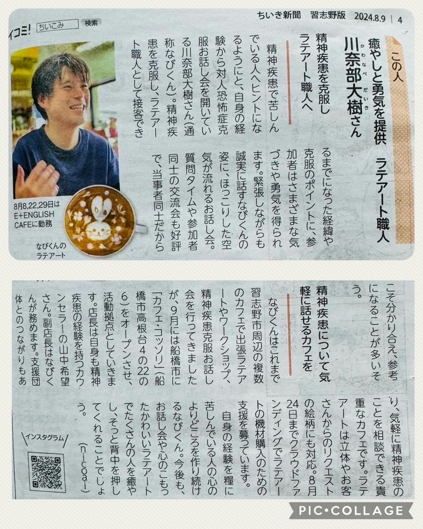 先月の取材を経て、掲載して頂いたちいき新聞が今月発行されました。