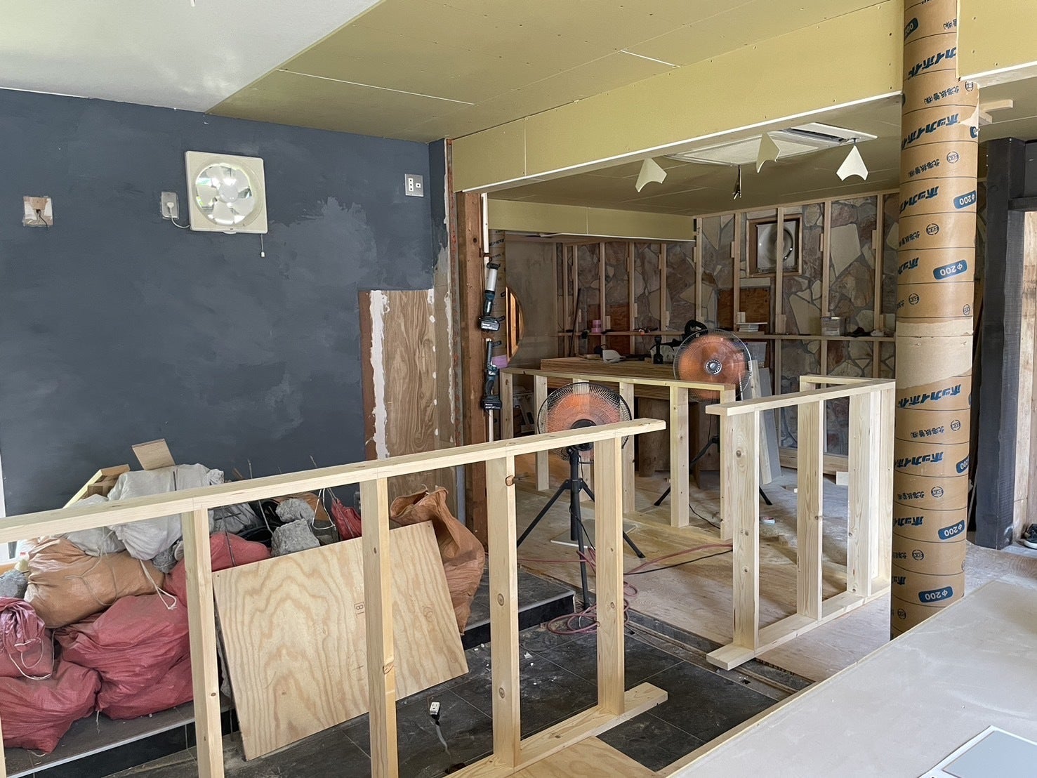 内装工事が着々と進んでおり、私たちが立つカウンターの基礎ができてきました!これからこの場所に厨房機器を導入し、みなさんがお食事できるように天板がつけられていきます。そしてみなさんから見えるように、今回のプロジェクトで購入するエスプレッソマシンをこのカウンターに設置する予定です!少しづつ形になっていく私たちのお店。これからどう変わっていくかみなさんも楽しみにしていてください♪店長 山中(のん)