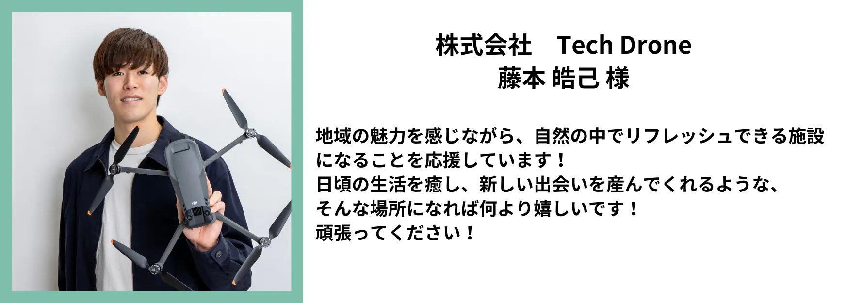 代表取締役 藤本 皓己様 YouTubeはこちら▶︎▶︎▶︎Drone Channel