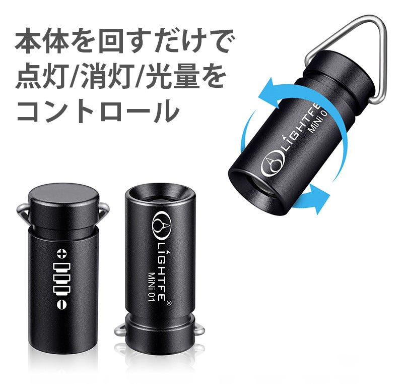 本体をひねるだけの簡単操作で、電源のON/OFFと光量を調整できます。
