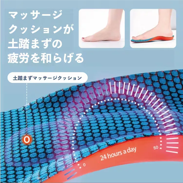 踏み込むたびにクッションが土踏まずを刺激し、足裏のダルさを癒します。