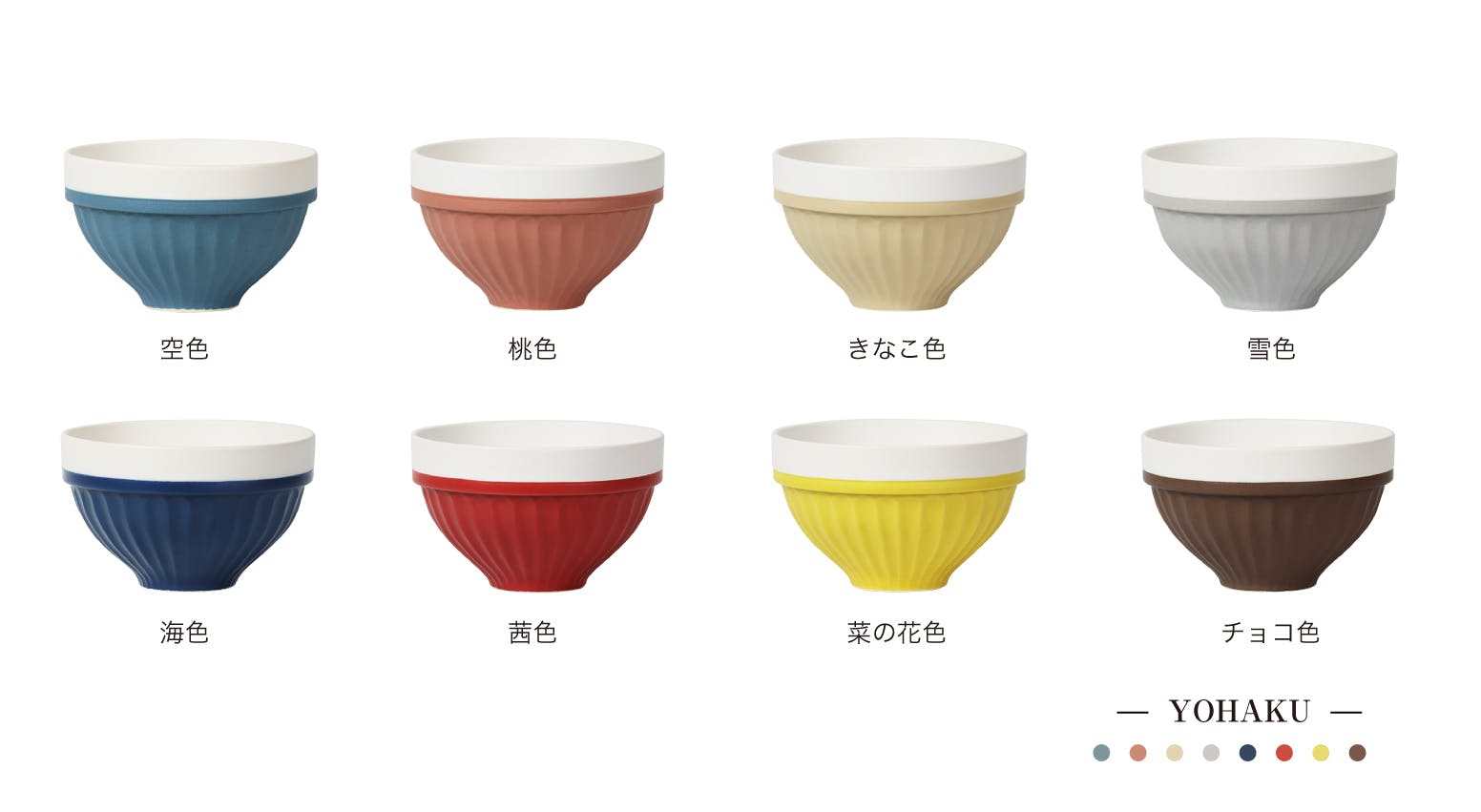白い空間や、隙間の空いた時(使わない時)に意味を持たせたことから、YOHAKU(余白)という商品名となりました。YOHAKU には、伝統ある技法に、新しいアイデアを積み込んでいます。機械と手仕事の中間をせめぎ合う事で、今まで変わらなかった商品に少しのアイデアをプラスして、新しい商品を生み出しました。繋がりを感じる事のできる茶碗を、ぜひ食卓に。