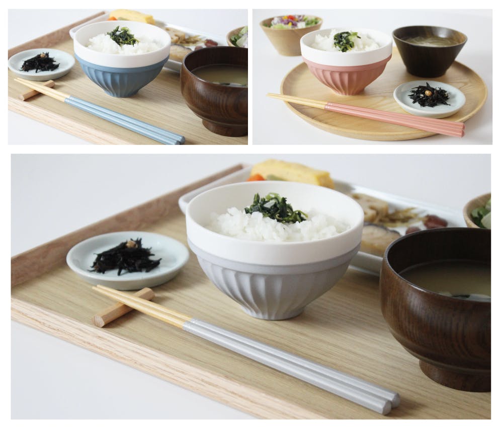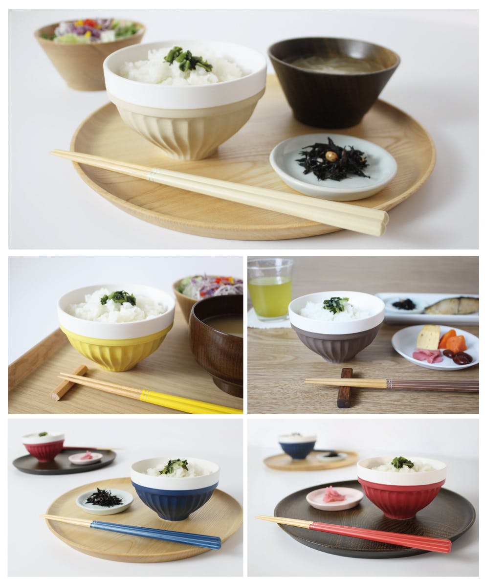 同時開発で、茶碗の色に合わせた、お箸も同じ8色展開をしております。