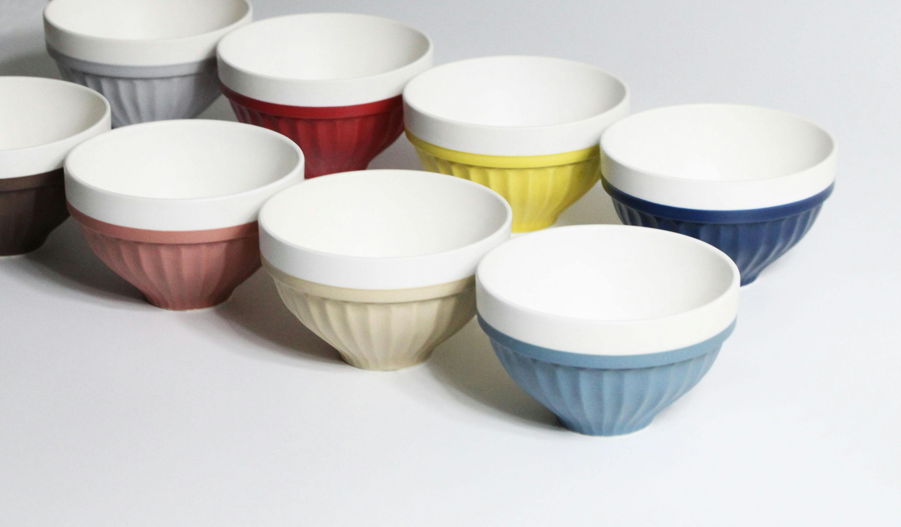 そこで、見た目が綺麗に収納する事ができ、かつ安全に、どの色の茶碗が置いてあるのか、一目でわかるような形状を考えたのが始まりです。企画からデザイン、実際に形になるまで、実に1年の歳月をかけてしっかりと開発に取り組んできました。それぞれの特徴の中に、苦労した点が沢山あり、一つ一つ解決しながら、形状を作り上げました。