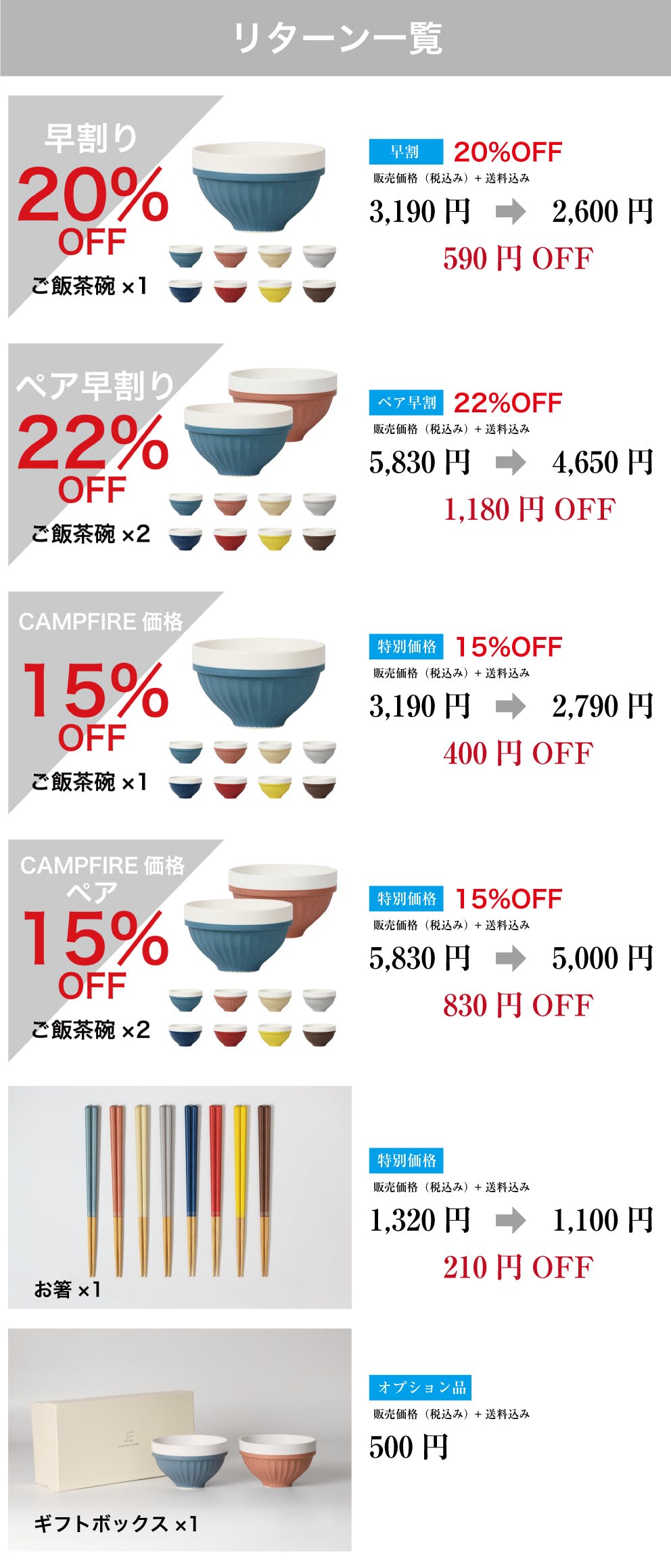 リターン品でも選べるようにしておりますので、