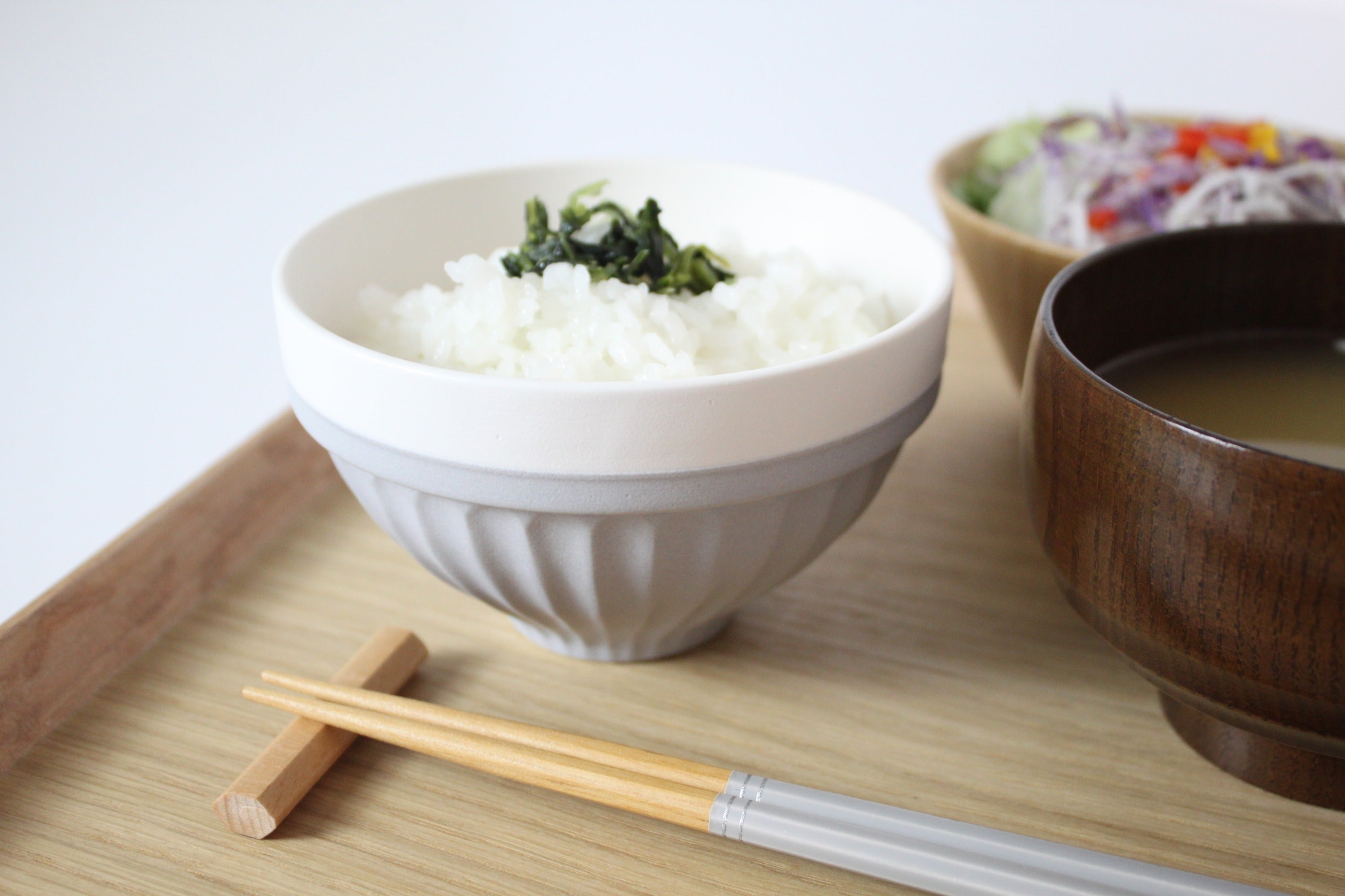 日本の食卓には、欠かすことの出来ないご飯茶碗。家族の分だけ、きっと用意される食器だと思います。中には、自分専用の色や形の茶碗を持っている人もいる事だと思います。そんな誰しも持っている茶碗に、 新しい楽しみをプラス出来ないかと考えました。そこで注目したのは、使わない時に置かれている状態でした。不安定なバランスで重なった商品や、重なった状態では、色がわからない商品もあり、見た目だけでなく、安全面でも問題があると感じました。