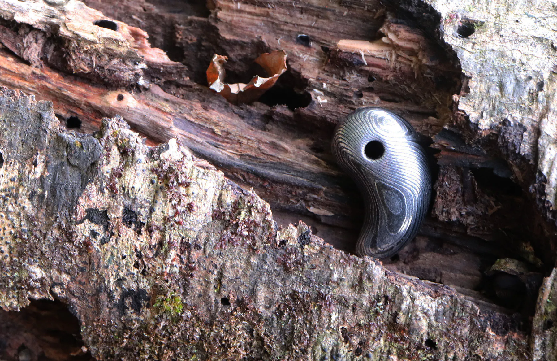木々の間から注ぐ木漏れ日が苔に差し込む。木霊(こだま)のような勾玉に癒されます。