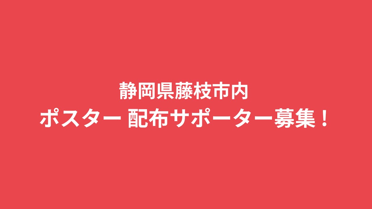 今回、クラウドファンディングの目標額達成と事業周知のため『藤枝市限定版クラウドファンディングポスター』を、藤枝市とその近隣市のお知合いやお気に入りのお店に掲示をお願いししていただく、30名のサポーターを募集します。