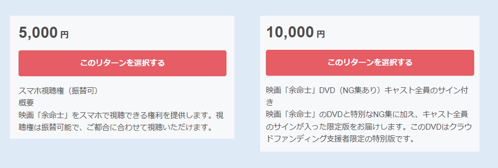 クラウドファンディングのリターンには、スマホ視聴権やDVDプレゼントもあります