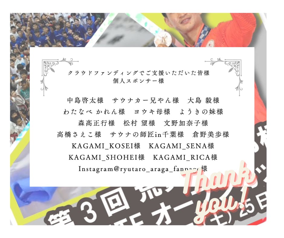 この度は、龍太郎カップ開催にあたり、温かいご支援をいただき誠にありがとうございます。皆様のお名前を大会パンフレットに掲載させていただきました。