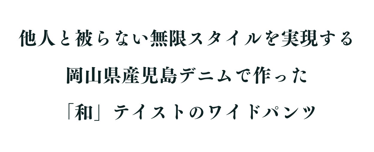 岡山県が世界に誇る児島デニムと日本の縫製技術が融合したワイドパンツです。
