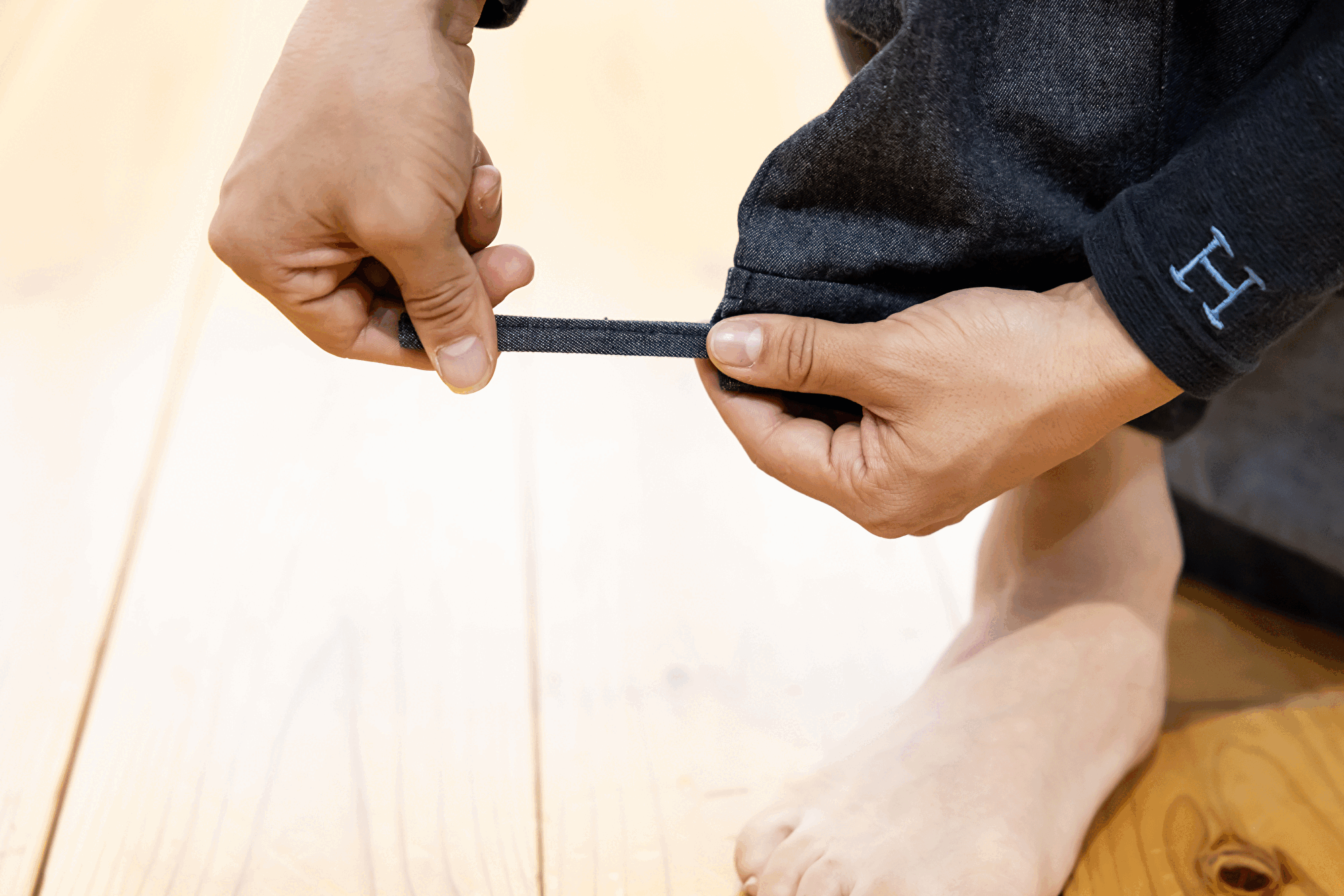 裾は縛ればお好みの長さに調節できます。裾上げの心配や、長さを気にしなくても大丈夫です!