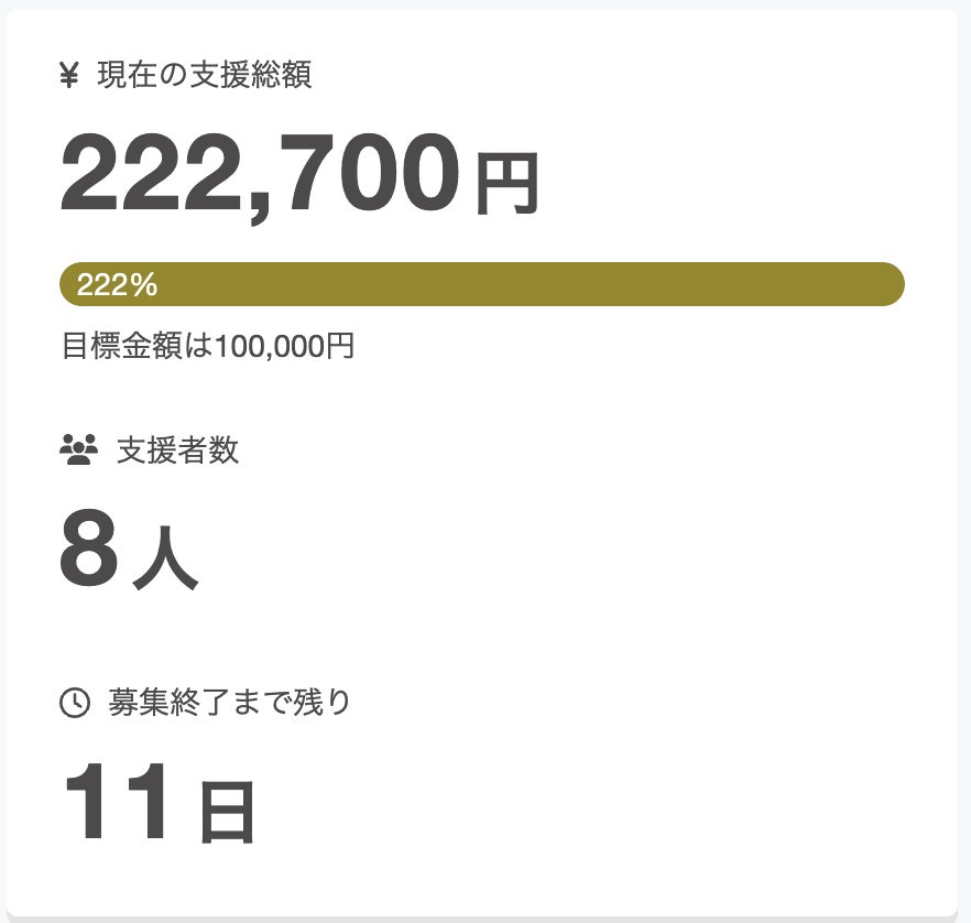プロジェクト終了のご案内、たくさんのご支援をありがとうございます!