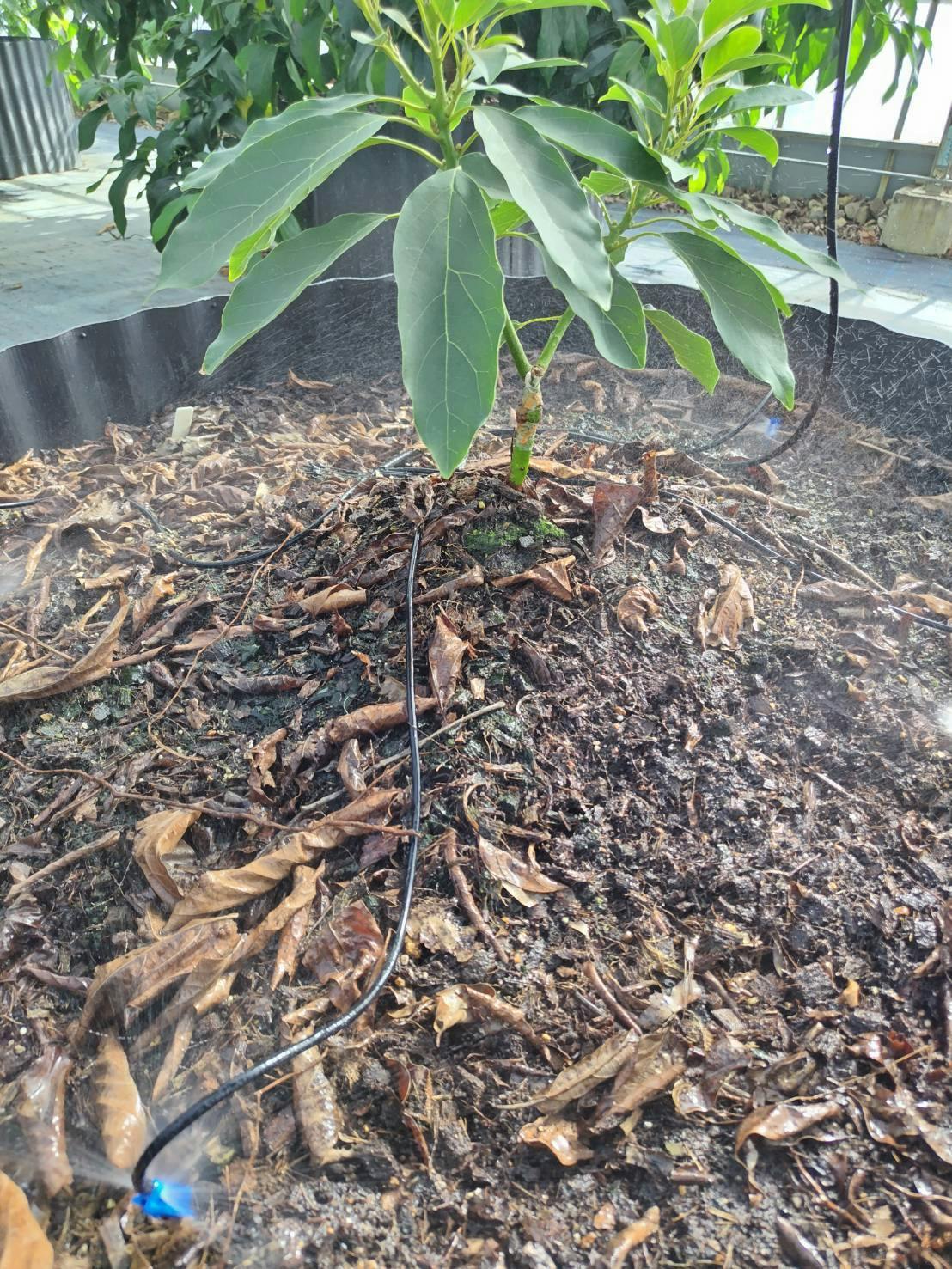 過水に弱く、多水性であるという性質を持つアボカドのために自動の水管理システムでこまめに水をかけるようにしています。