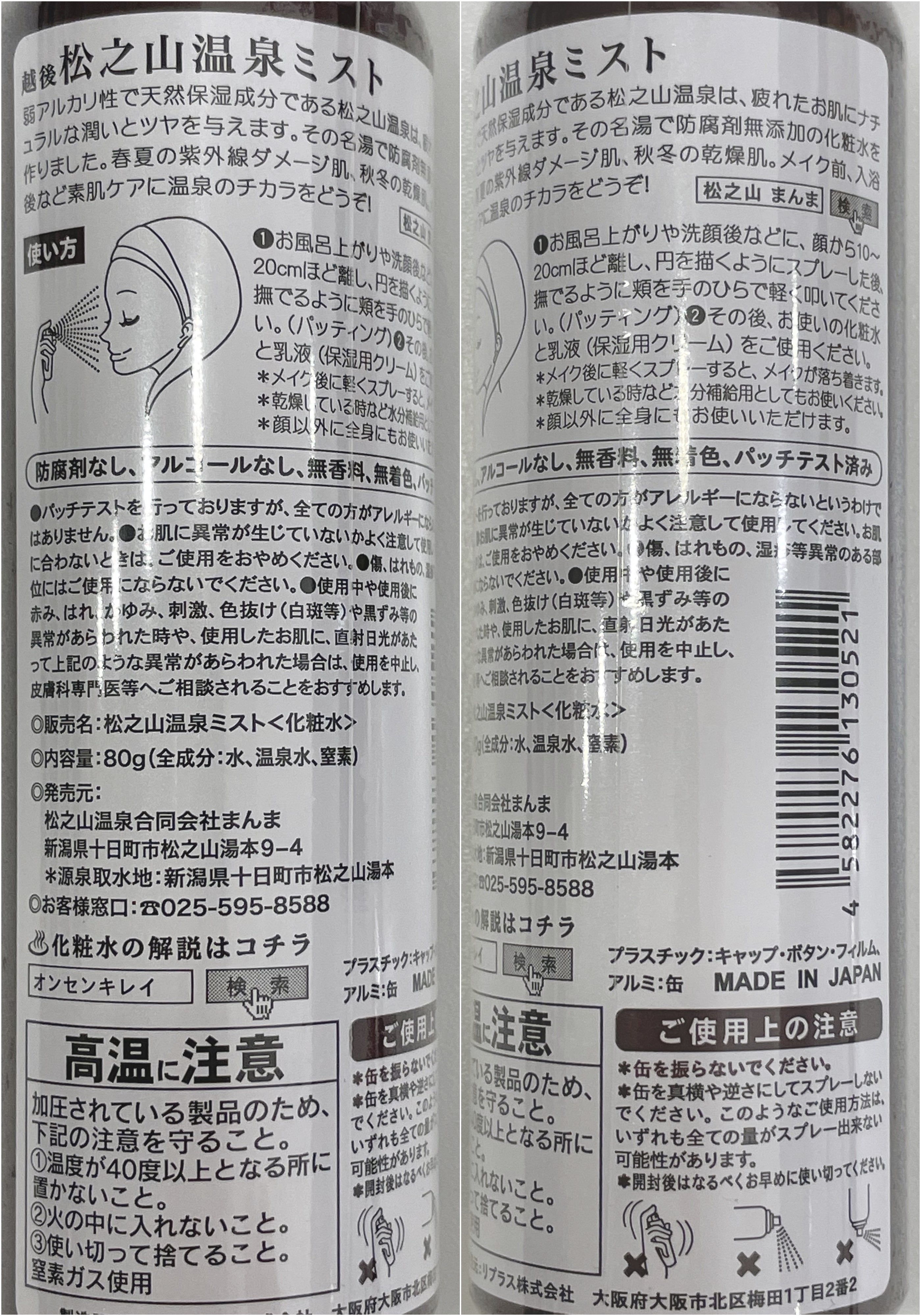 山あいにある日本三大薬湯松之山温泉は湯治場として昔から多くの人を癒やしてきました。そんな松之山温泉の効能を十分に体感でき、お土産品としても大変人気なのが、松之山温泉コスメセットです。今回はその中でも人気を誇るミスト、フェイスマスク、リップクリームをセットにしました。どこでもおウチで松之山温泉を楽しめます。※商品について(松之山温泉合同会社まんま)