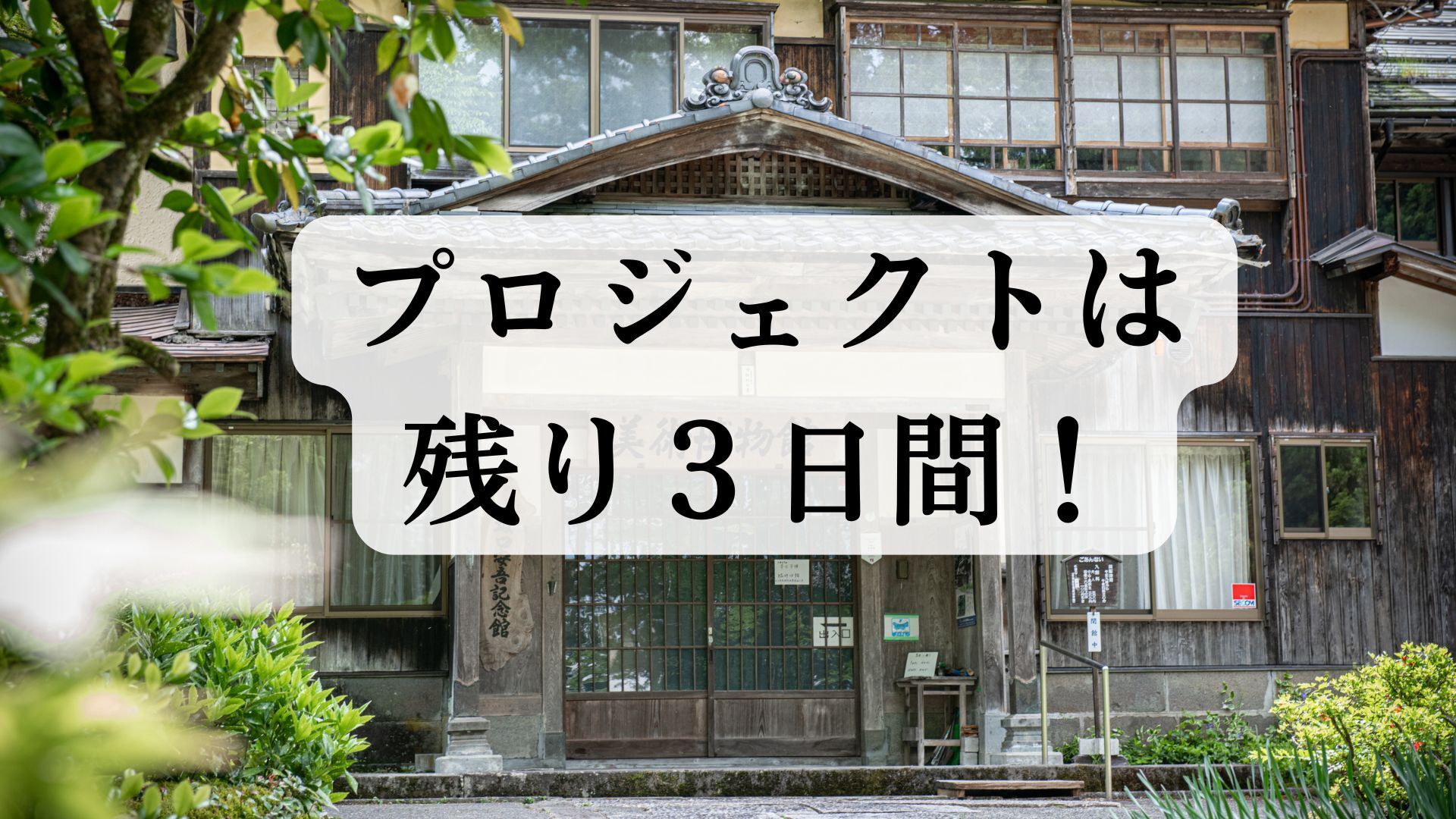 プロジェクトは残り3日となりました!ご支援ありがとうございます。最後までご支援、ご協力、拡散をお願い申し上げます。
