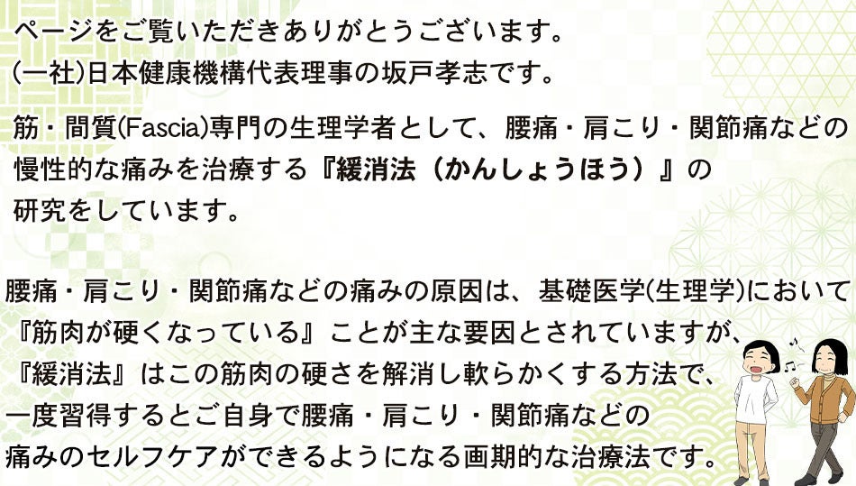 『緩消法』に関心を持っていただいた方に、実際に緩消法を習得できる方法を提供いたします。
