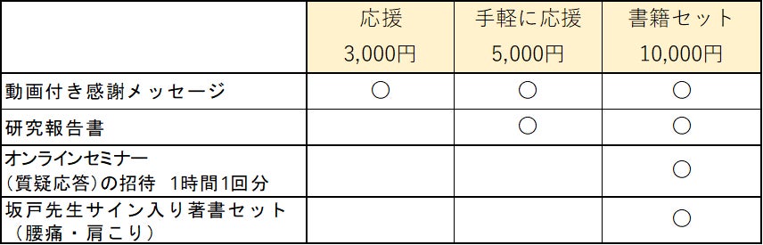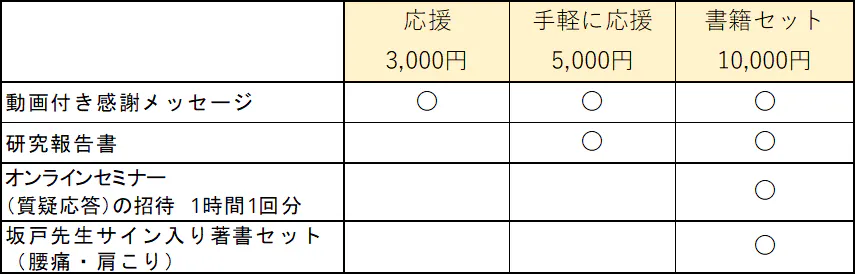 今回のプロジェクトでは、 『腰痛アカデミー』会員権利もリターンにご用意しておりますので、この機会にぜひご検討くださいませ。