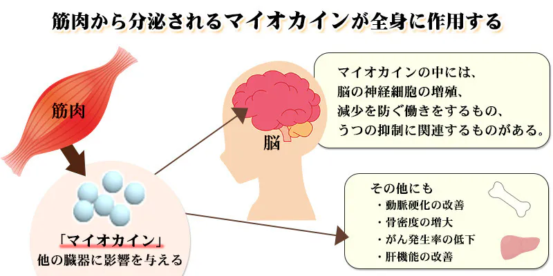 私たちが着目したのは、筋肉から分泌されるホルモンである「マイオカイン」の重要性でした。