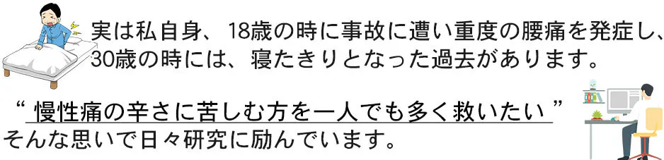 実際に筋肉の硬さ(緊張)が慢性的な痛みにつながることは既存の複数の研究成果で示されており、私はこれまでの治療法で痛みが軽減されなかった理由は、「筋肉が軟らかくならなかったからではないか?」と考えました。