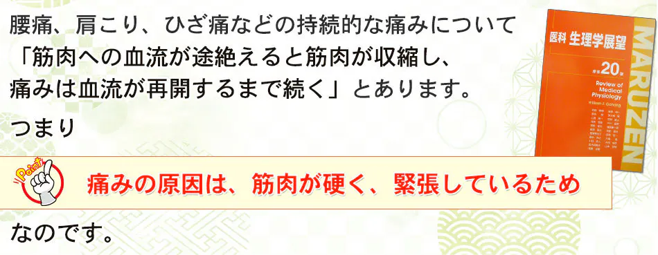 筋肉の硬さと痛みの有無の間に関係があることは研究からもはっきりしました。
