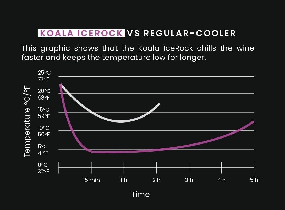 【IceRock】は凍結ジェルを備えた二重構造のクーラーで、ワインやシャンパンのボトルを迅速かつ効果的に冷却するように設計されています。氷の追加を省き水の無駄を削減します。