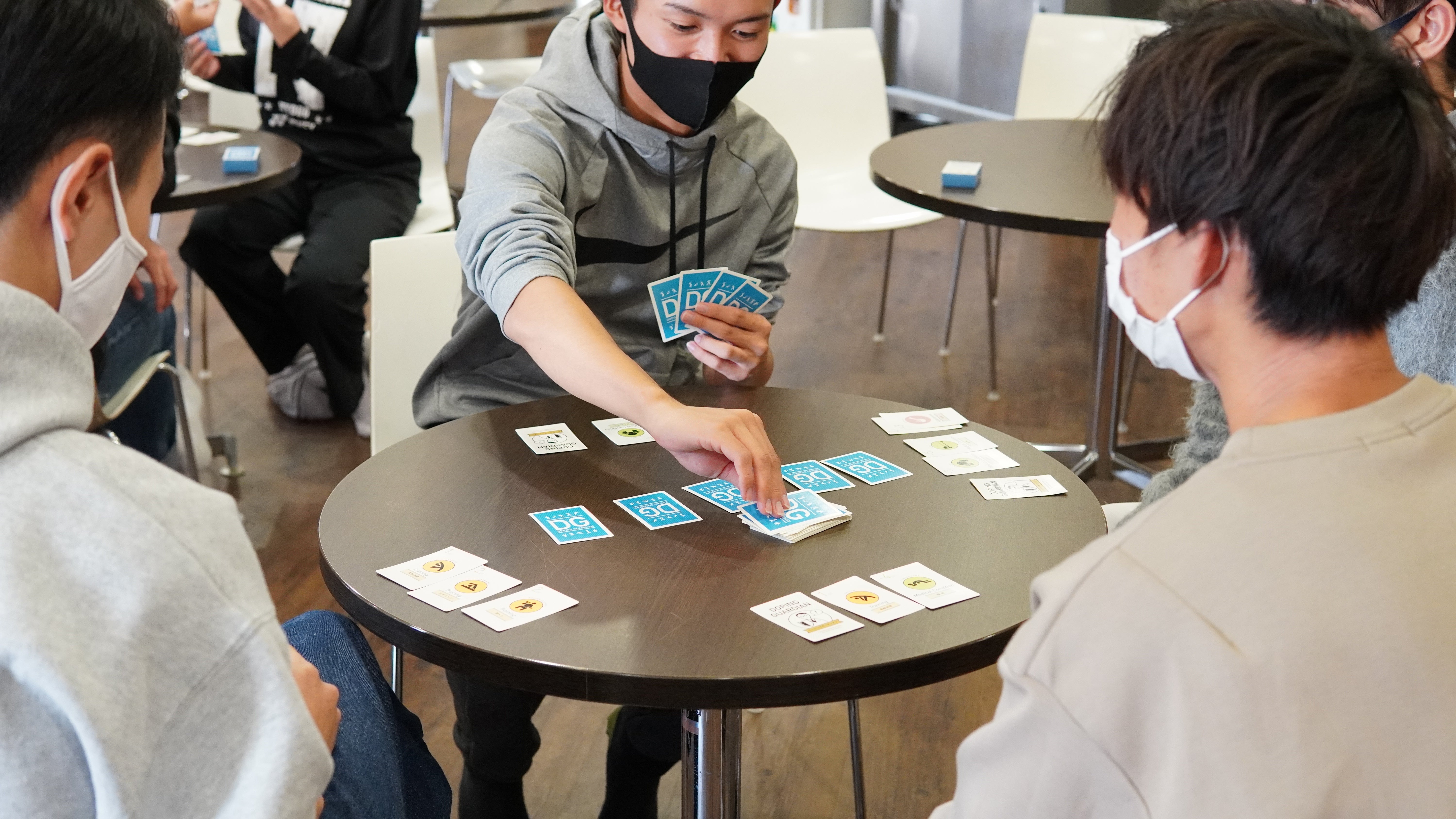 小学校の先生方に協力してもらい、ドーピングガーディアンのカードゲームを一緒にしていただきました!