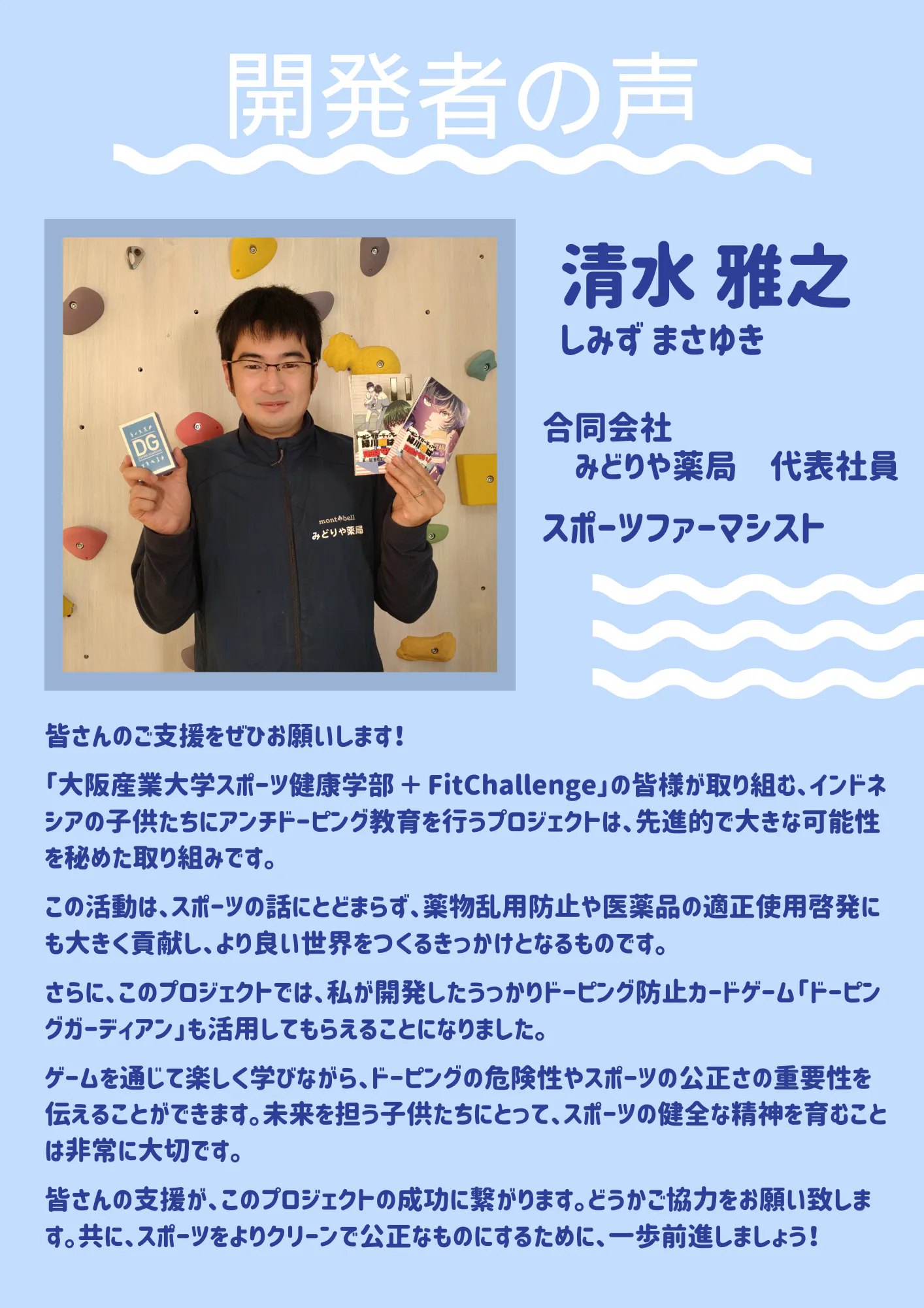 私たちは、このプロジェクトの目標を達成するためには、『ドーピング・ガーディアン』というカードゲームが有効だと考ました。