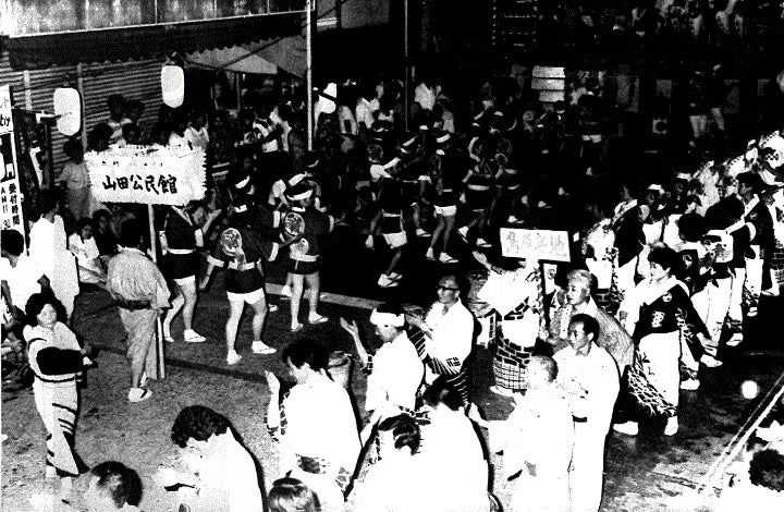 「黒埼まつり」は、当時の旧黒埼町が町制施行10周年を迎えたことを記念し、昭和58年(1983年)に町主導で行われたのが始まりです。当時は町の事業として行われ、町の中心商店街を歩行者天国にして、1500人あまりが参加する民謡流しや子ども向けの様々な屋台・縁日、やかた灯籠など延べ3日間にわたる大規模な、町民のお祭りとして賑わってきました。