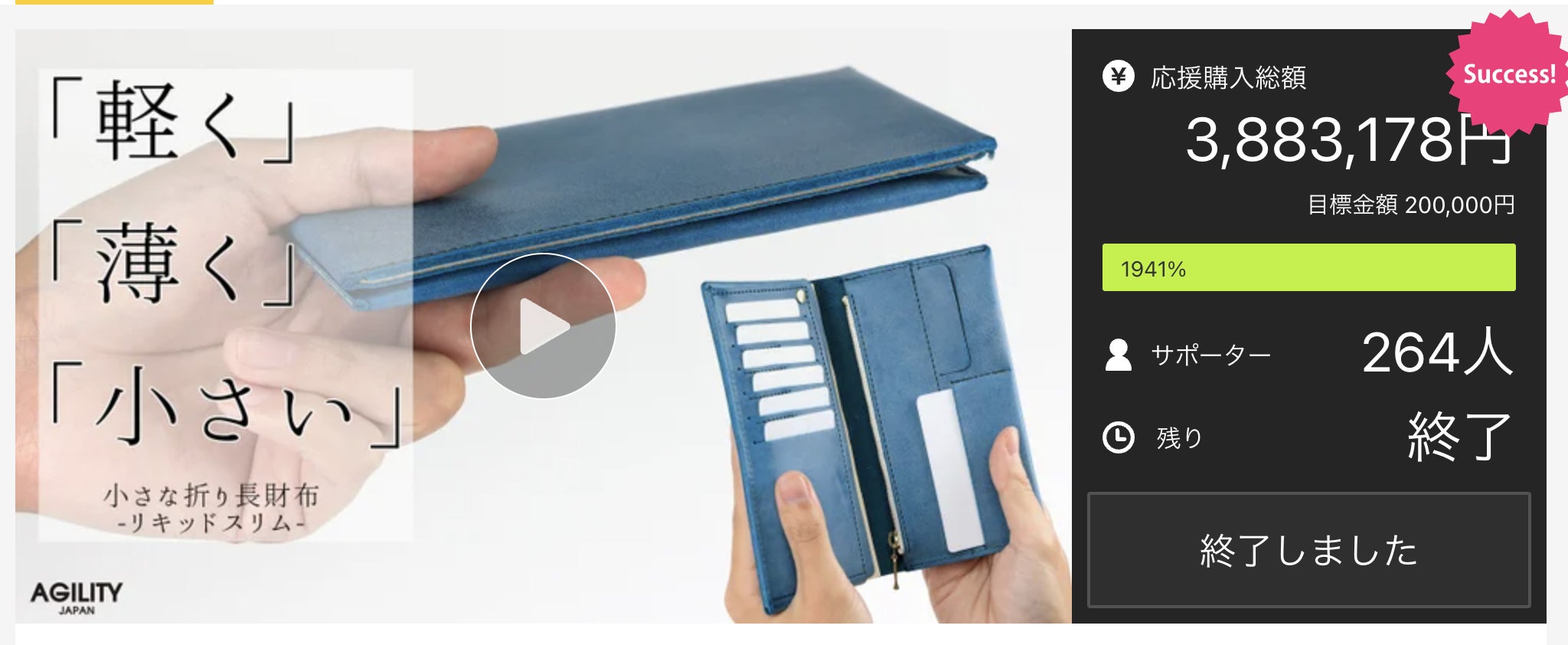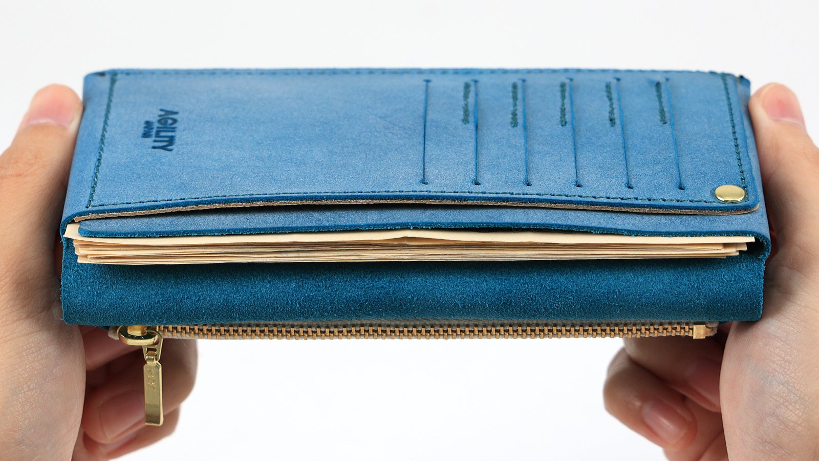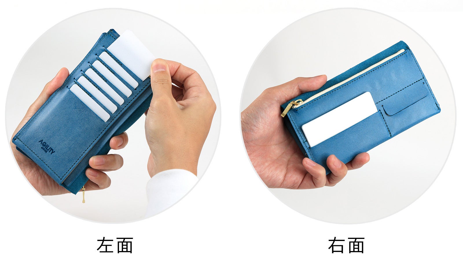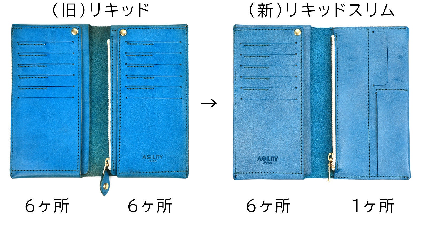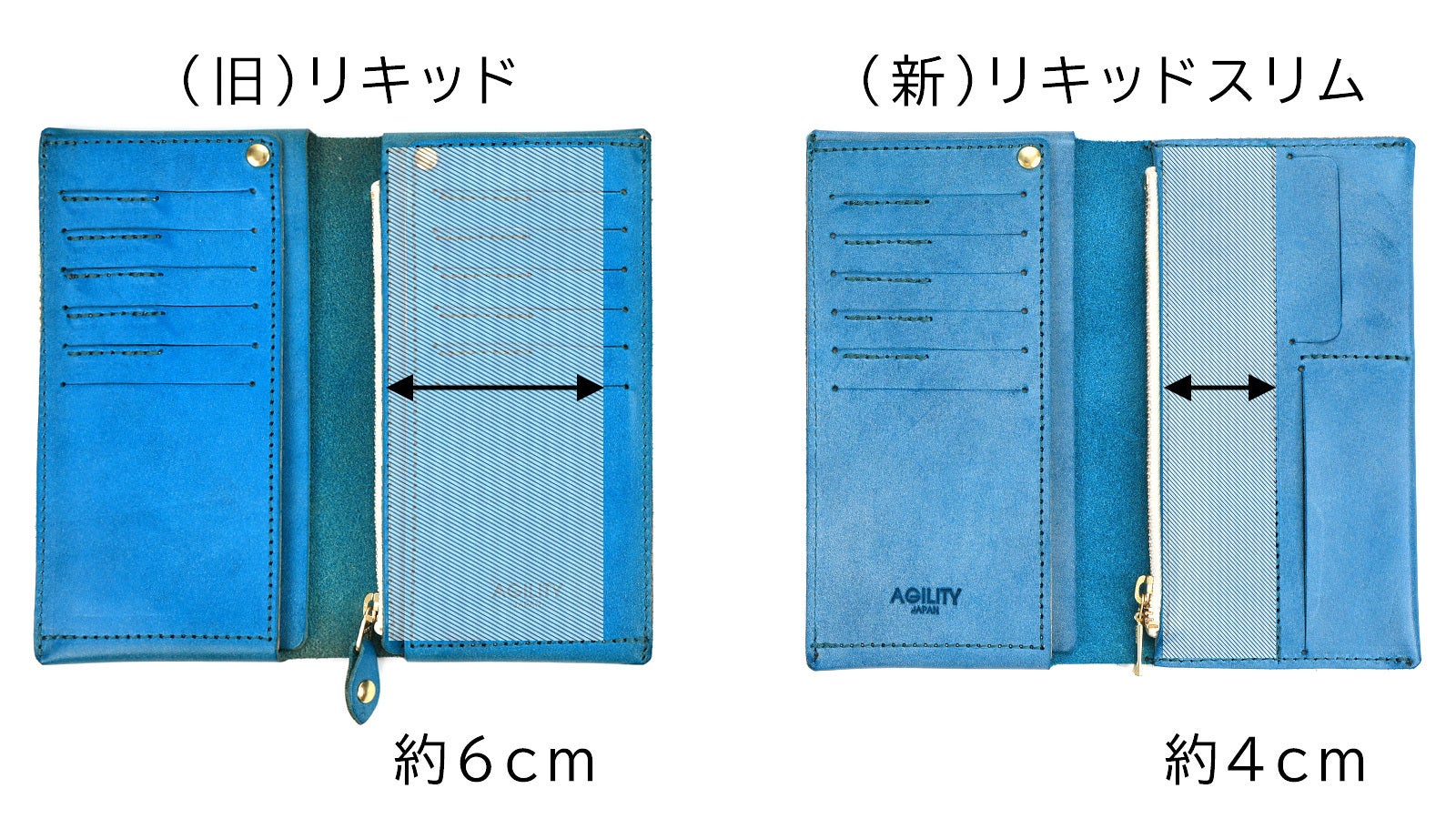 「リキッドスリム」はAGILITYの人気コンパクト長財布「リキッド」を現代の支払い事情に合わせさらに薄く・軽量にした長財布です。