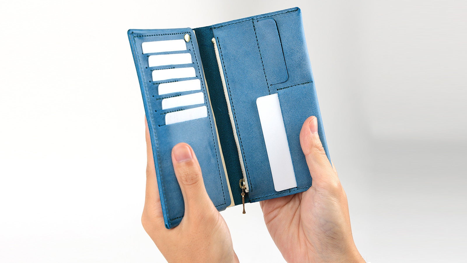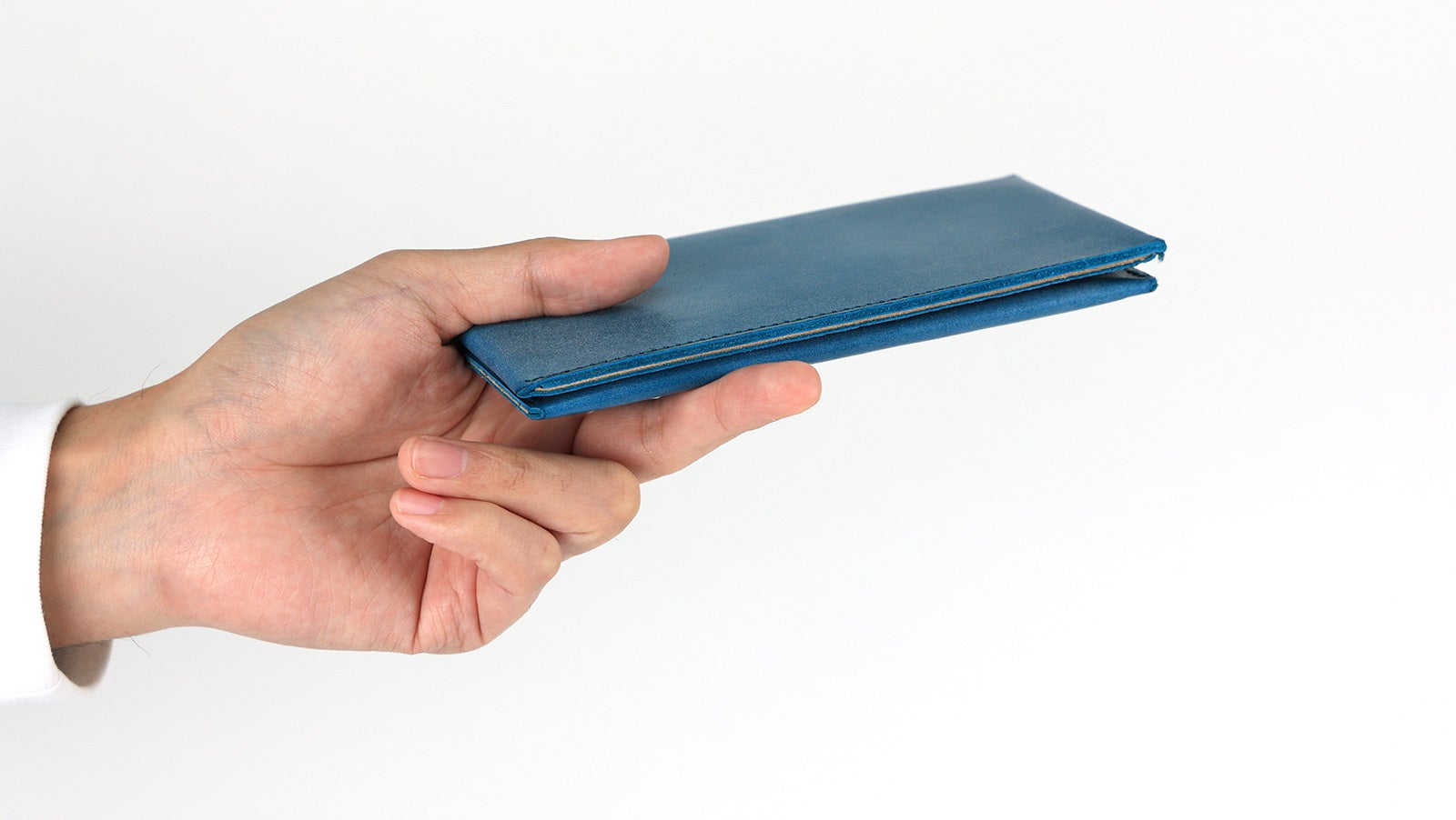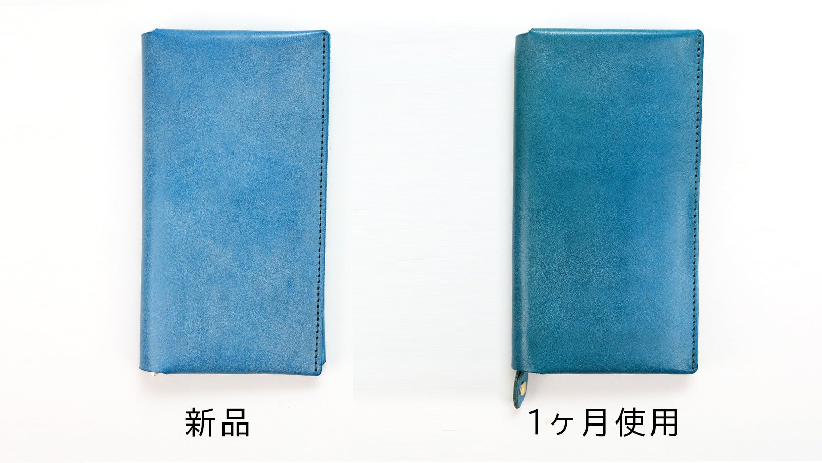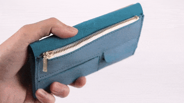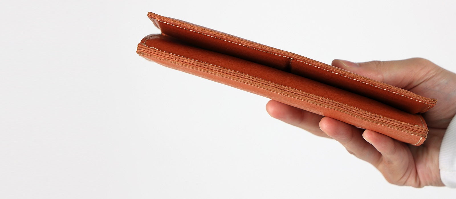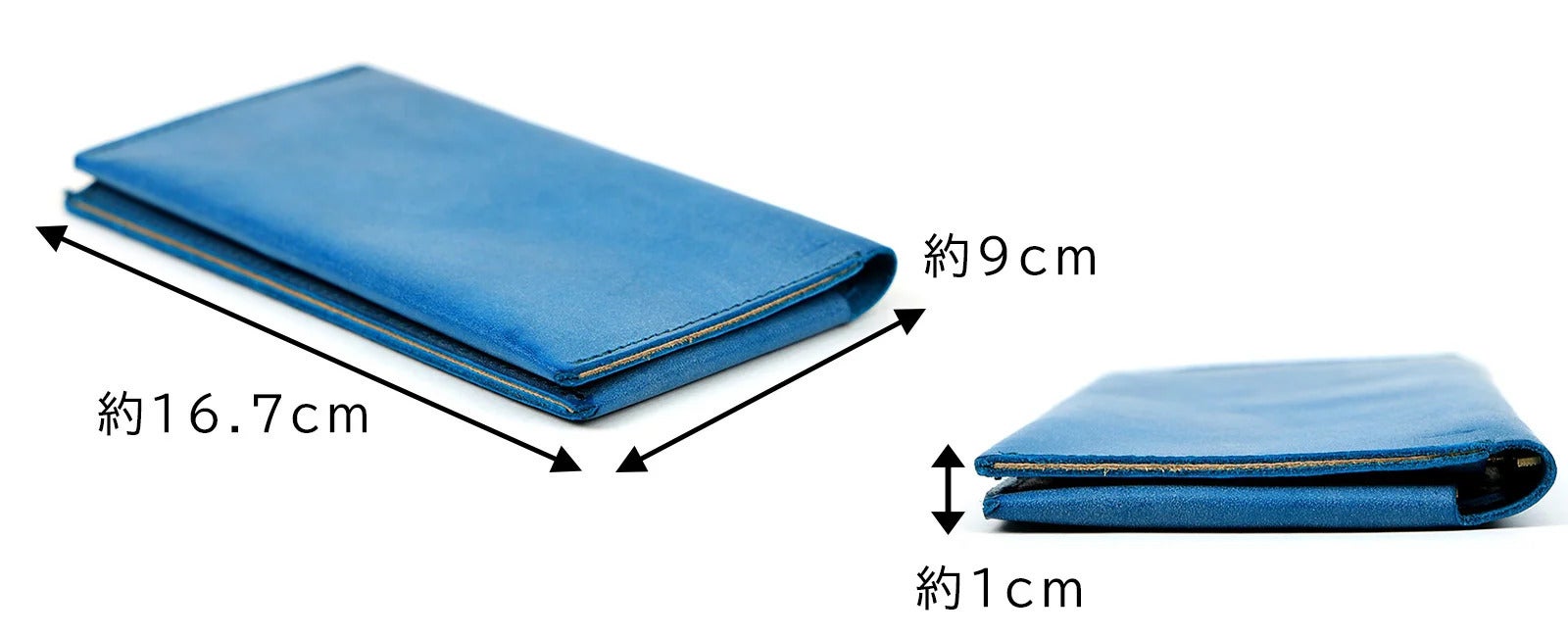 一般的な革長財布と比べても、約半分の重さで仕立てる事に成功しました。