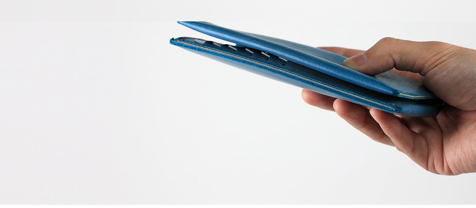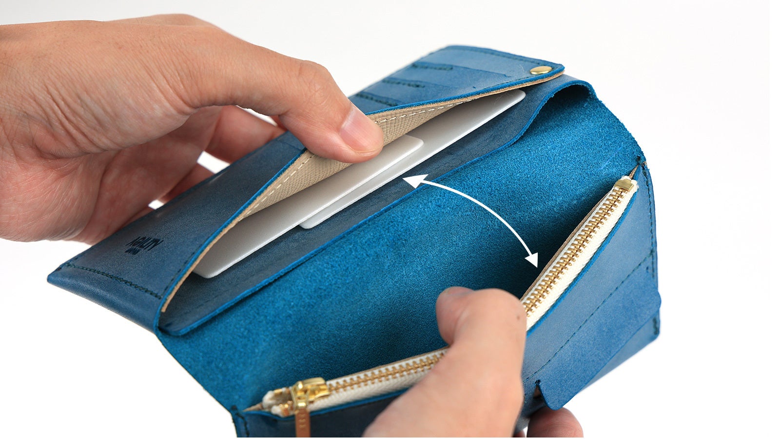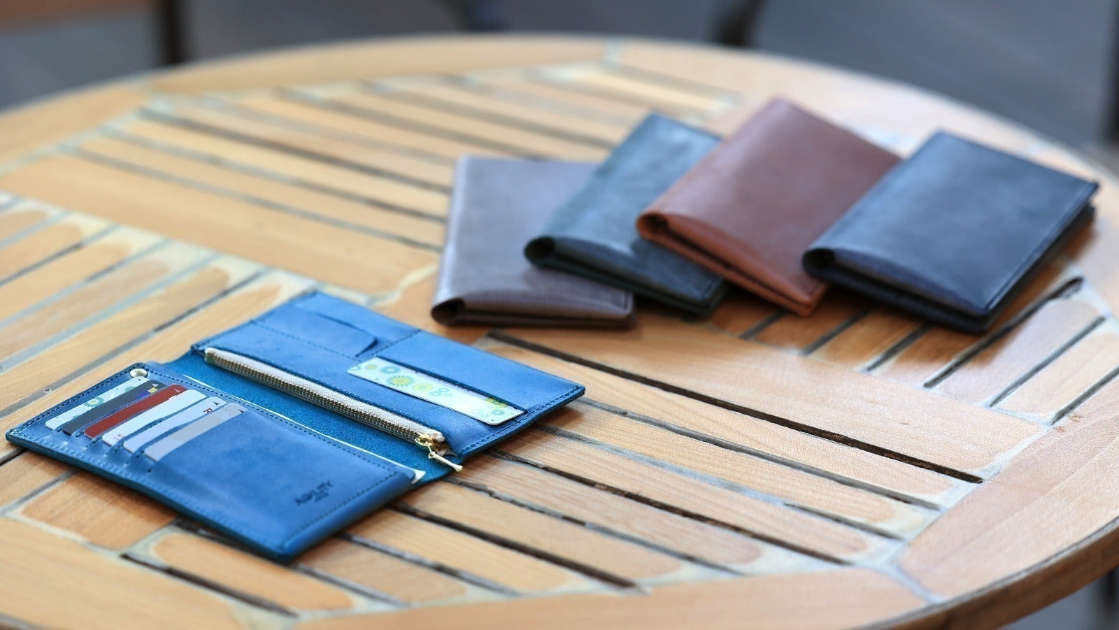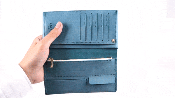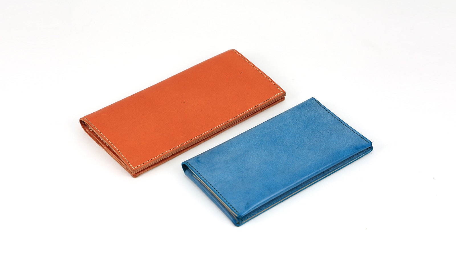 一般的な革長財布と比べても、約半分の重さで仕立てる事に成功しました。