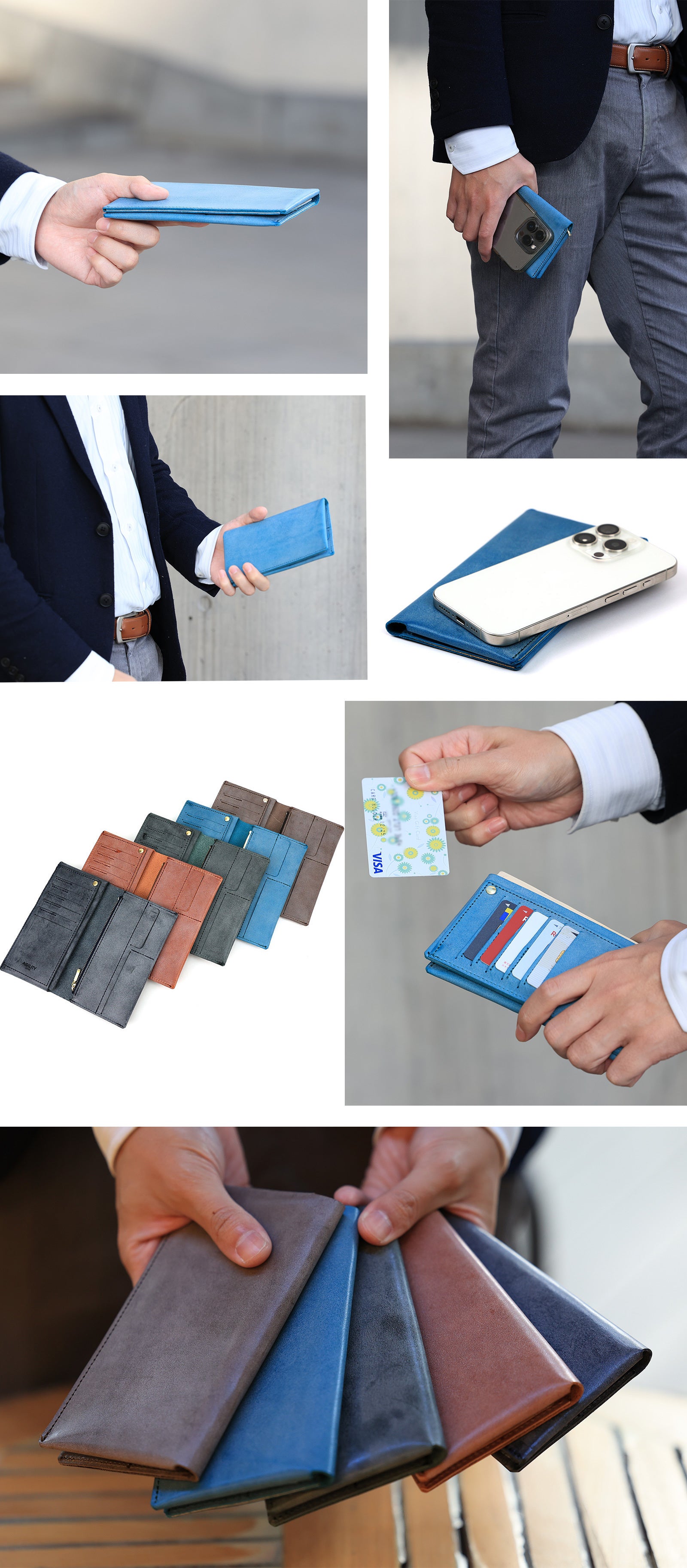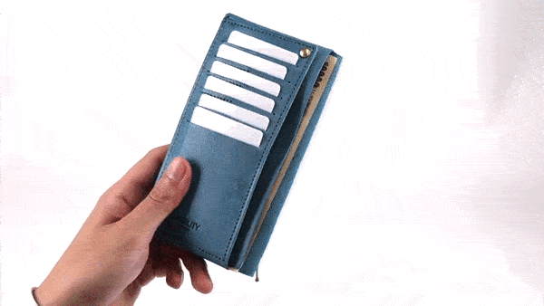 一般的な「縦使いの長財布」をベースにしつつ、カードスロット等を削り現代のサイズにリサイズしたお財布です。