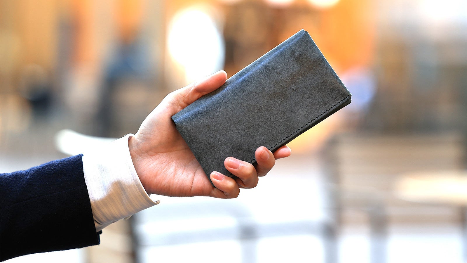 一般的な長財布と比較しても、一回りコンパクトなサイズ感となっています。