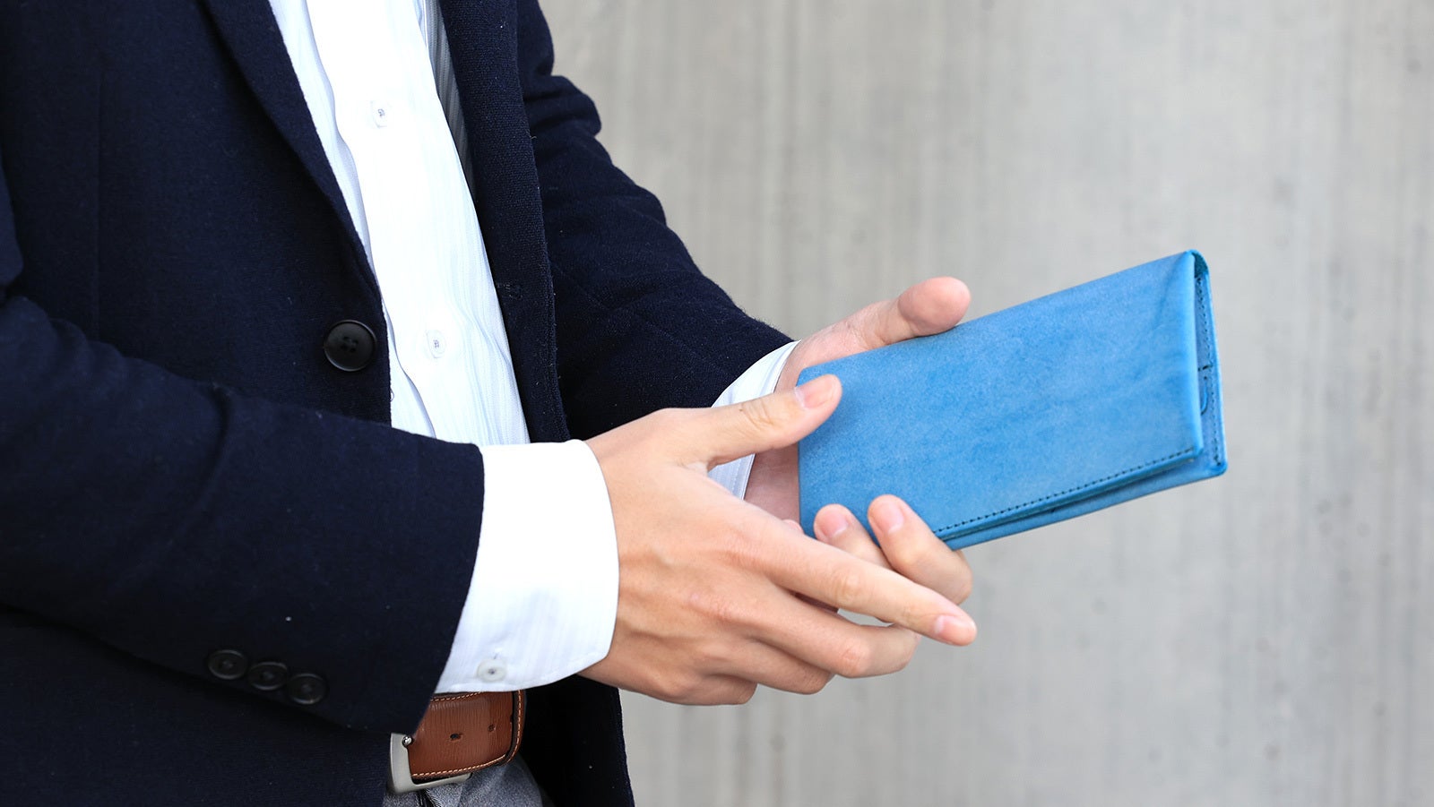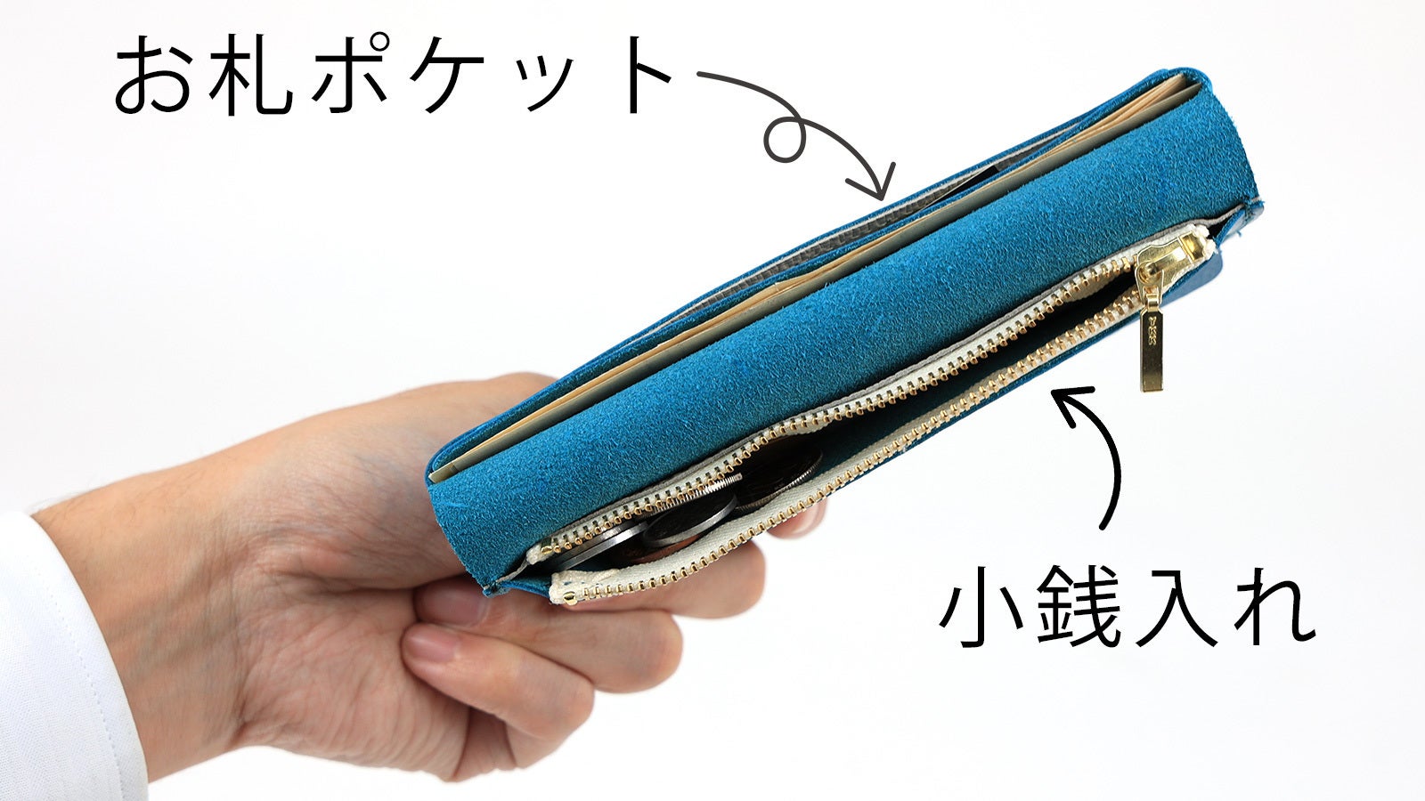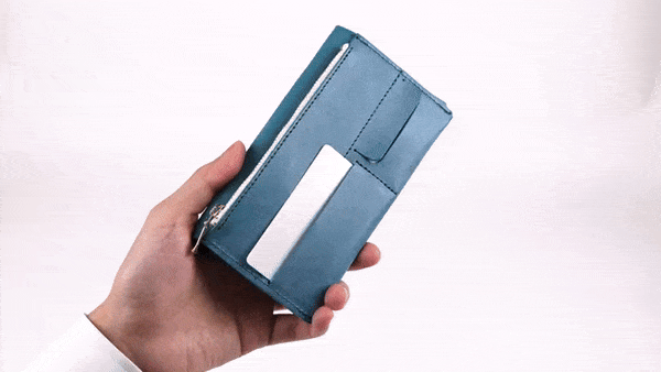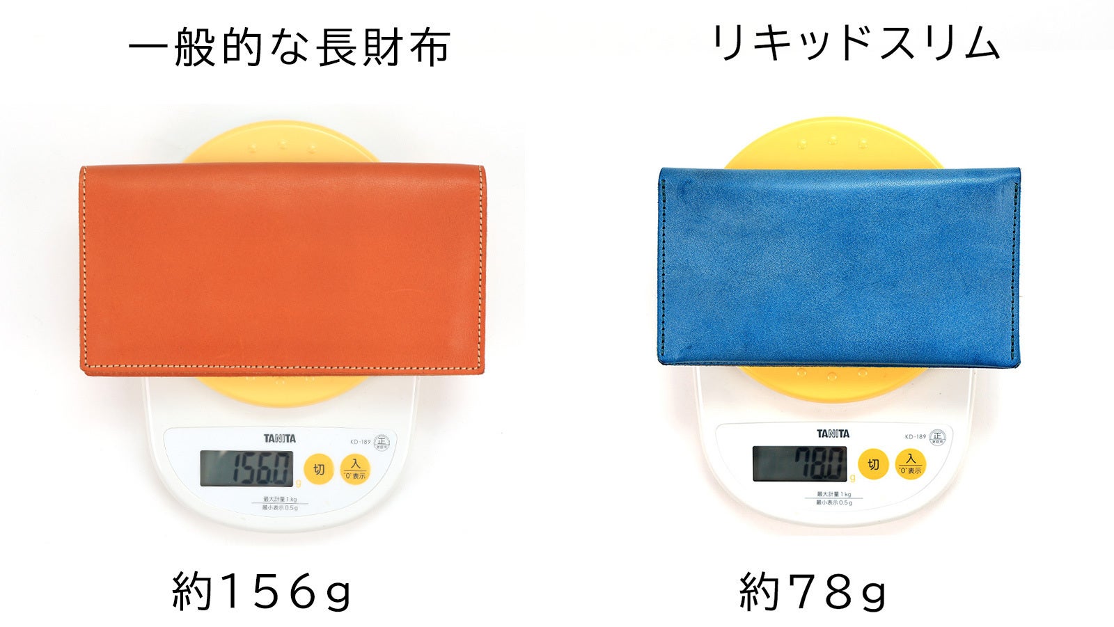 一般的な革長財布と比べても、約半分の重さで仕立てる事に成功しました。