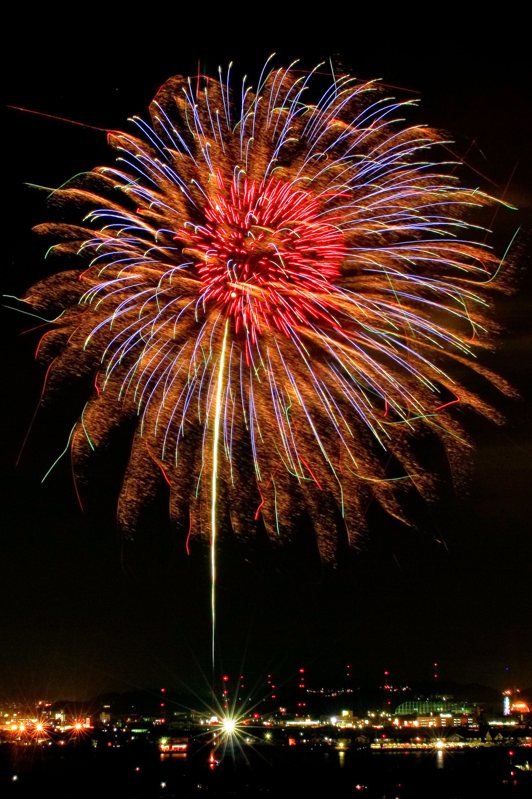 そして15日は福山夏まつりのフィナーレを飾る「あしだ川花火大会」~福山まちじゅう花火~。芦田川の広い水面に映る花火は福山ならではの美しさ。芦田川の両岸が観覧席になっており,全身でその迫力を体感できます。
