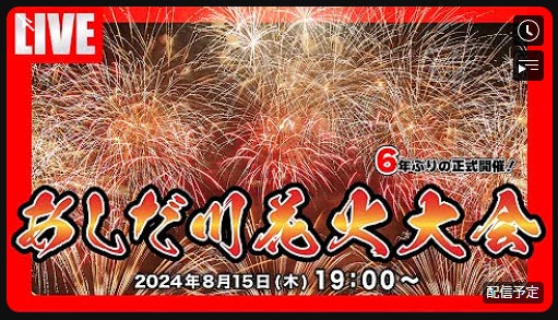 ※あしだ川花火大会は荒天の場合、8月17日を順延日に設定しています。仮に17日も荒天で花火大会が中止になった場合、配信を行うことができません。
