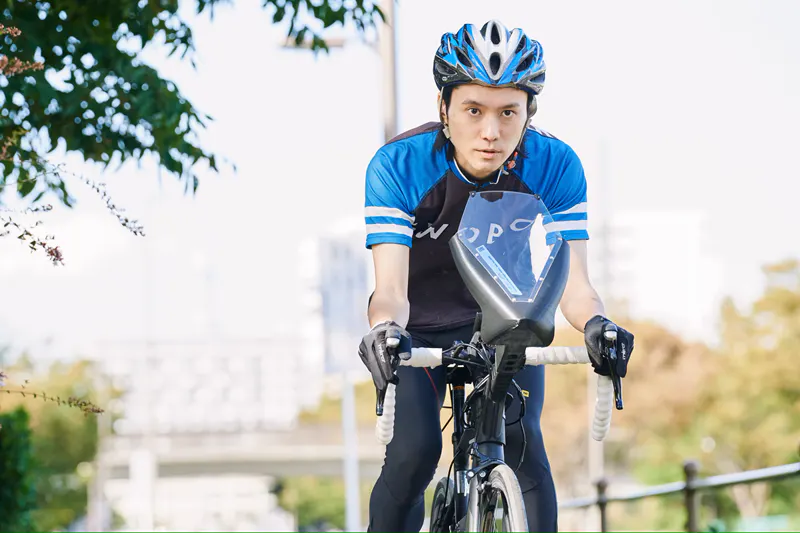 ポイント① 空気抵抗の軽減効果で向風でも少し楽に走れる!