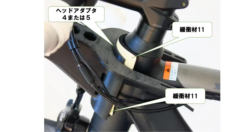 (注1)リムブレーキ式の一部の車種は、ブレーキケーブル等の干渉により装着できない場合があります。(注2)自転車ヘッドチューブの前面、側面に突起物がある場合はパーツとの干渉により装着できない場合があります。(注3)以下の車両には取り付けられません。