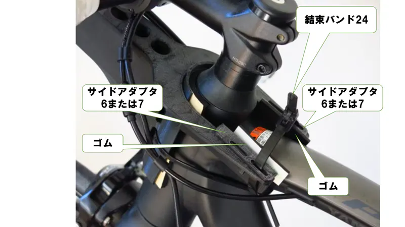 アダプターをトップチューブに結束バンドで固定