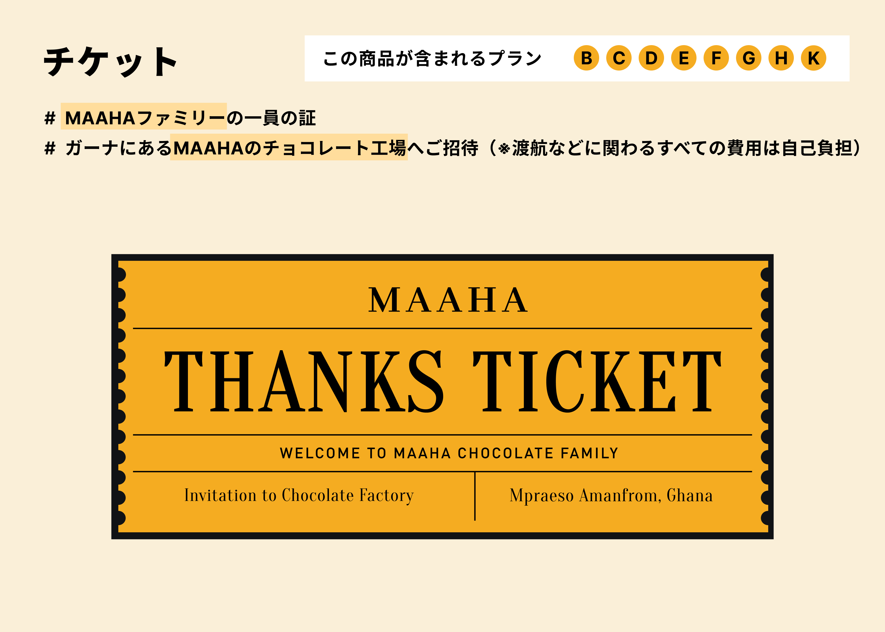 また、MAAHAファミリーの証として、ガーナのチョコレート工場への招待チケットも作成しました!