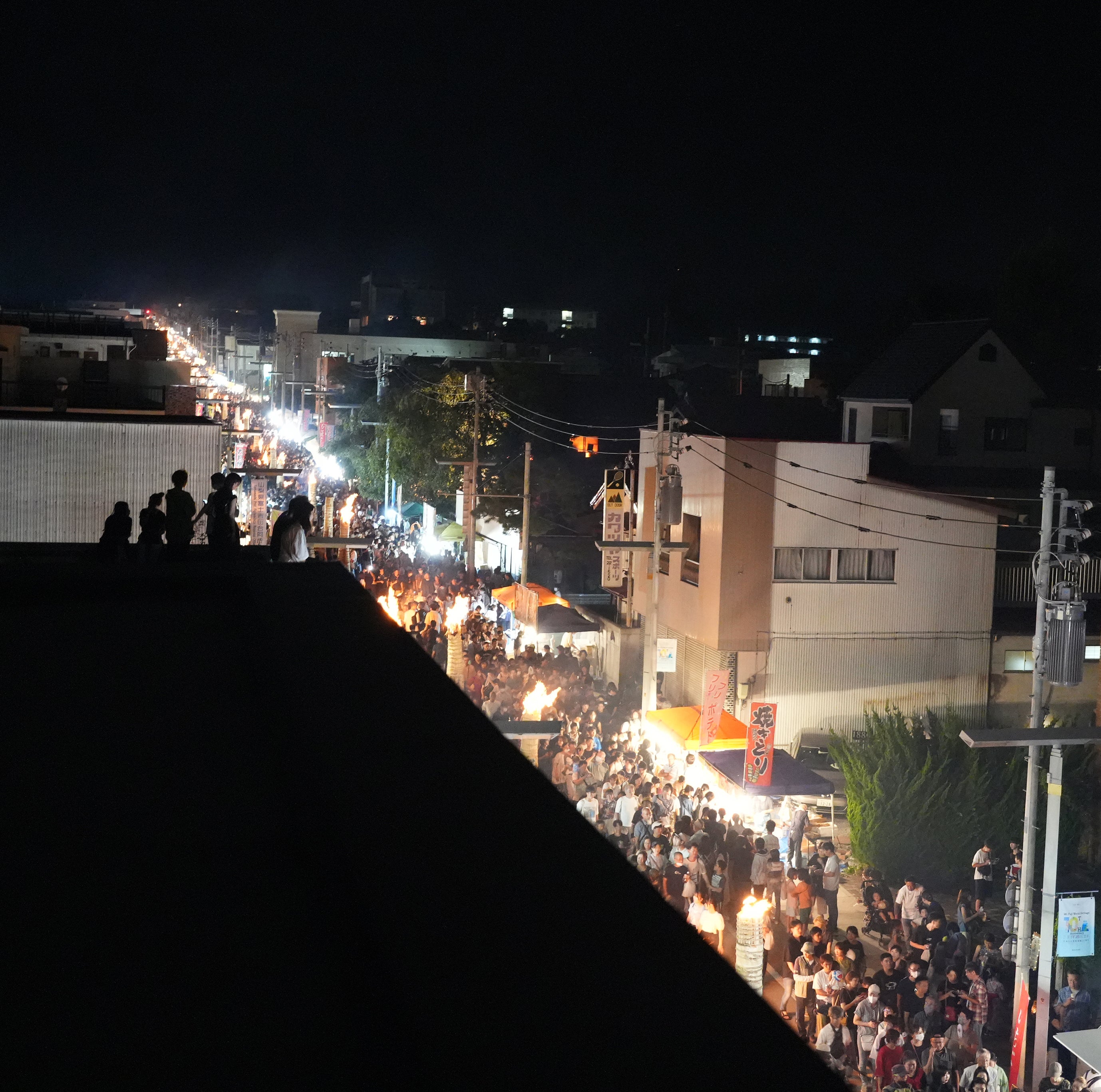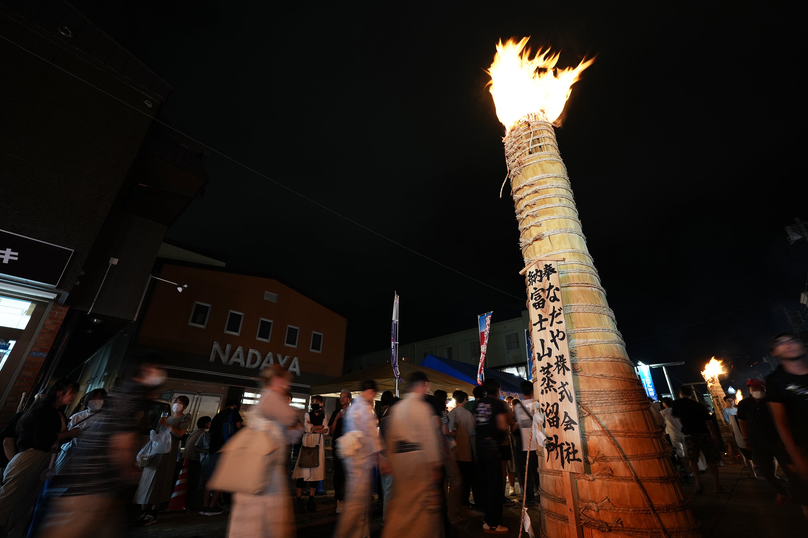 日本三奇祭 吉田の火祭り 富士山蒸留所前通りで開催されます。