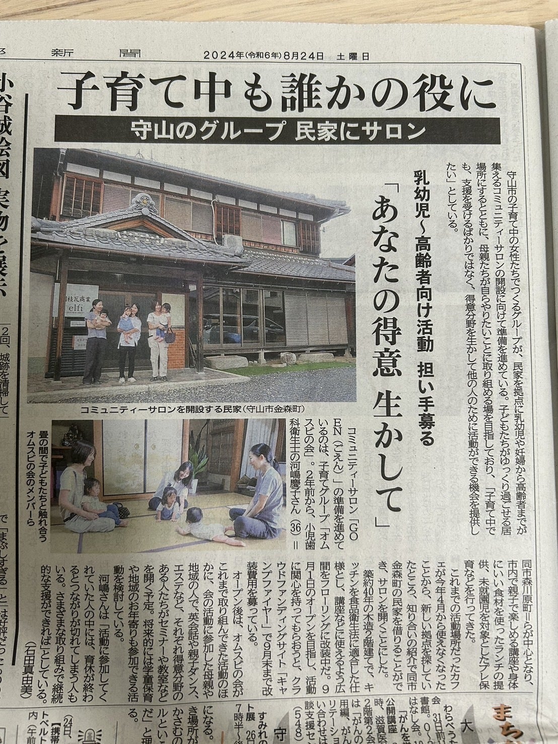 2024年・8月24日京都新聞にcommunity salon★GOENが掲載されました。支援を受けられる場でもあるが、そこからみんなが自律していける場へ。クラウドファンディングもその1つだと考えています。みんなで作り上げる居場所を目指して…そんな想いをお話しさせていただきました。是非、チェックしてみて下さいね!