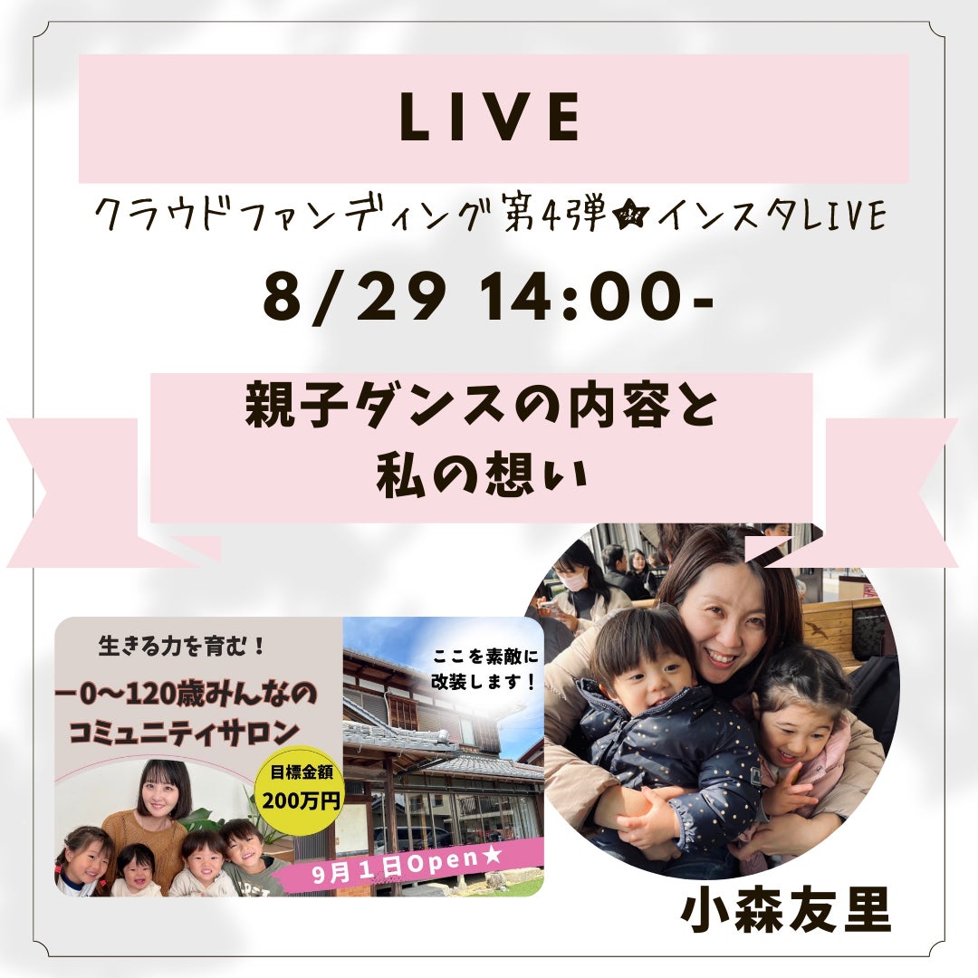 クラウドファンディング第4弾★インスタLIVEクラウドファンディング返礼品で人気の親子体験レッスンチケットの1つ。\\ハピリズム♡子連れOK!ダンス教室//講師のゆりちゃんに『親子ダンス内容と私の想い』を語ってもらいましたー!こちらをTAPして動画を見る!またまたこんな良心的で寄り添ってもらいながらママが楽しんで青春出来るダンス教室があるなんて( ^ω^ )本当にゆりちゃんと話していたら私も自然と元気が出る!エネルギー量高めのゆりちゃん★それって凄く大事です。ママが元気になれる場を考えてくれて感謝です。【GOEN】には信頼出来る素敵な講師さん、メンバーしかいません♡是非こちらも最後まで視聴して下さい。こちらをTAPして動画を見る!そして!農業・英語・ダンスの中から3レッスン選択して体験出来るお得なチケットが、クラウドファンディングの返礼品で購入出来ちゃいます。是非、チケットが無くなる前にご購入いただき、ご支援よろしくお願い致します。休日開催チケットもあるので参加もしやすいですよ!他にも質問があればお気軽にお問い合わせください!