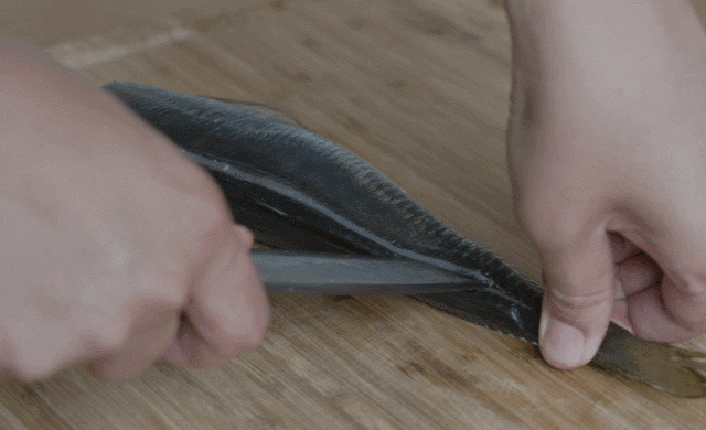 三徳包丁と違い刀身が短く、左右の利き手を問わず手首にスナップを利かせて引けば、誰でも簡単に魚の身を真っすぐ捌けます。