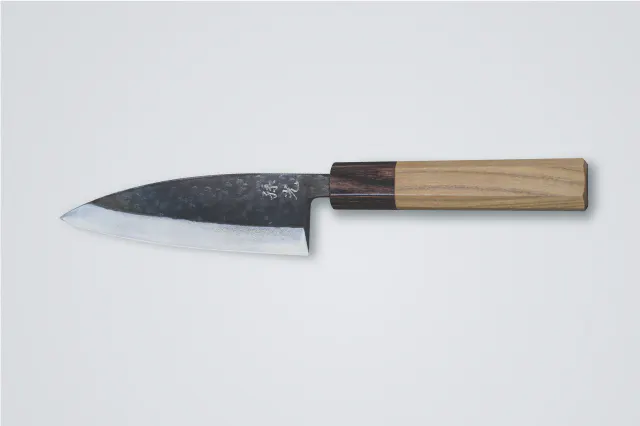 ①創業100年以上を誇る能登の野鍛冶が丹念に鍛造した万能出刃包丁。魚はじめ多彩な調理に使える