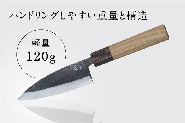 しかも【SHINBU】の重量は110gと一般的な和包丁に比べると軽量。