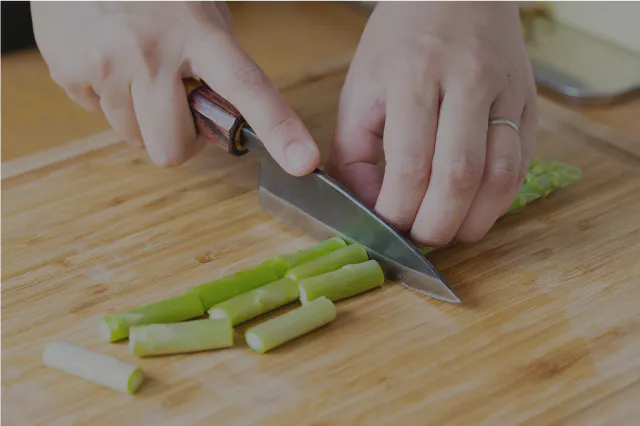長ネギやニンニク、ショウガなど薬味のみじん切りも、指先の延長線のように使える小ぶりな【SHINBU】なら楽々。