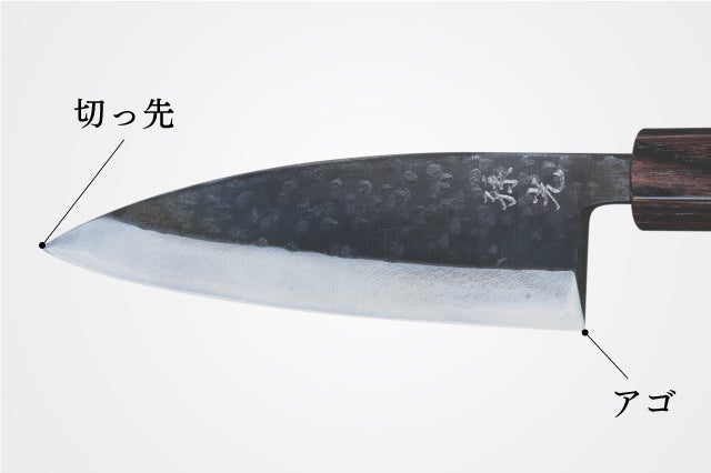 刃の根元のアゴは鈍角で厚く、魚の頭を落としたり硬い骨を叩いて断ち切ったりする時に刃こぼれを気にせずに行えます。
